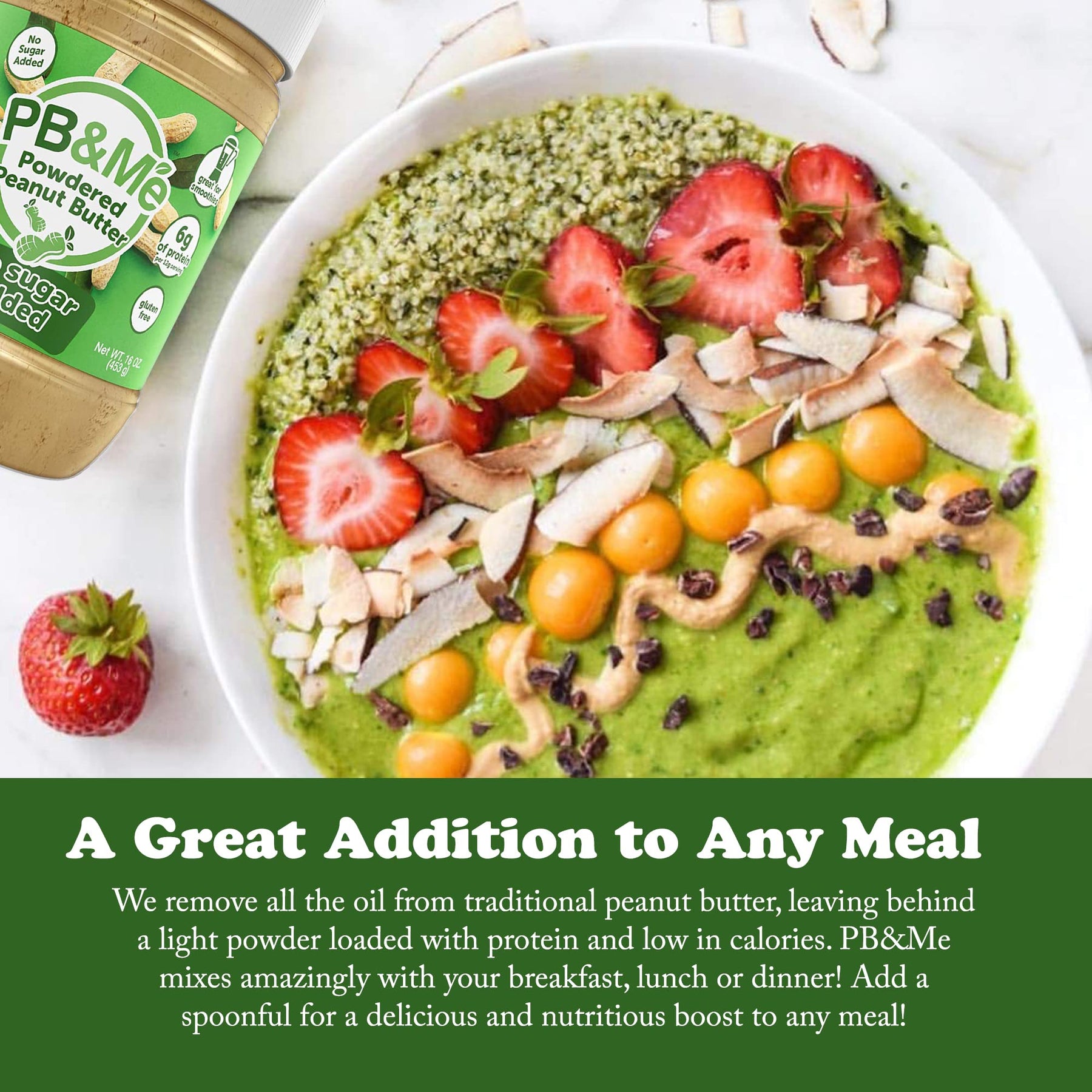 PB&Me Powdered Peanut Butter offers a nutritious, low-calorie alternative to traditional peanut butter. Made with non-GMO peanuts, this versatile powdered peanut butter is perfect for health-conscious individuals seeking a delicious and protein-rich option. Simply add water to create a smooth spread, mix into shakes and smoothies, use in baking, or enjoy by the spoonful.