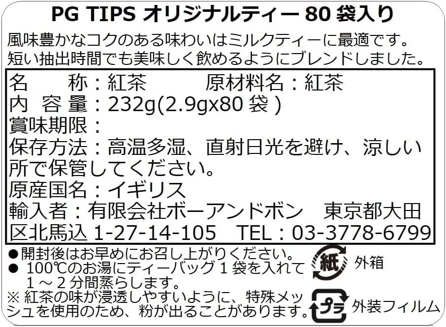 - Pack of 80 teabags (232g) with dimensions: 14 x 8 x 12 cm