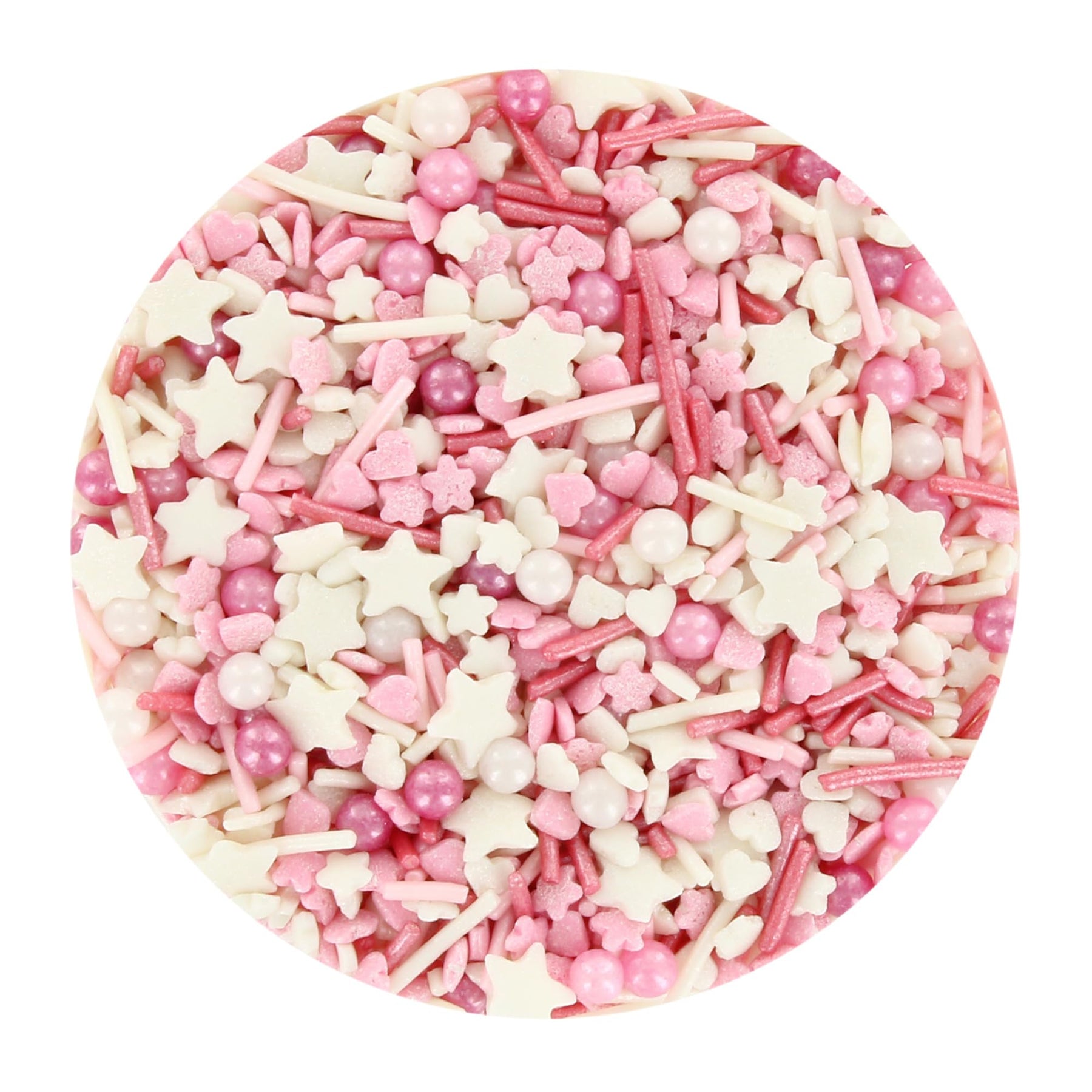 • Party Pink Mix with sugar strands, pearls, hearts, and stars