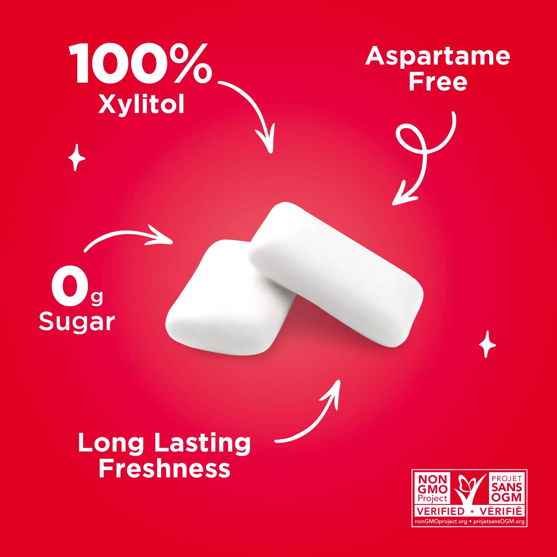• Keto-friendly and low-calorie—40% fewer calories than sugar-sweetened gums
