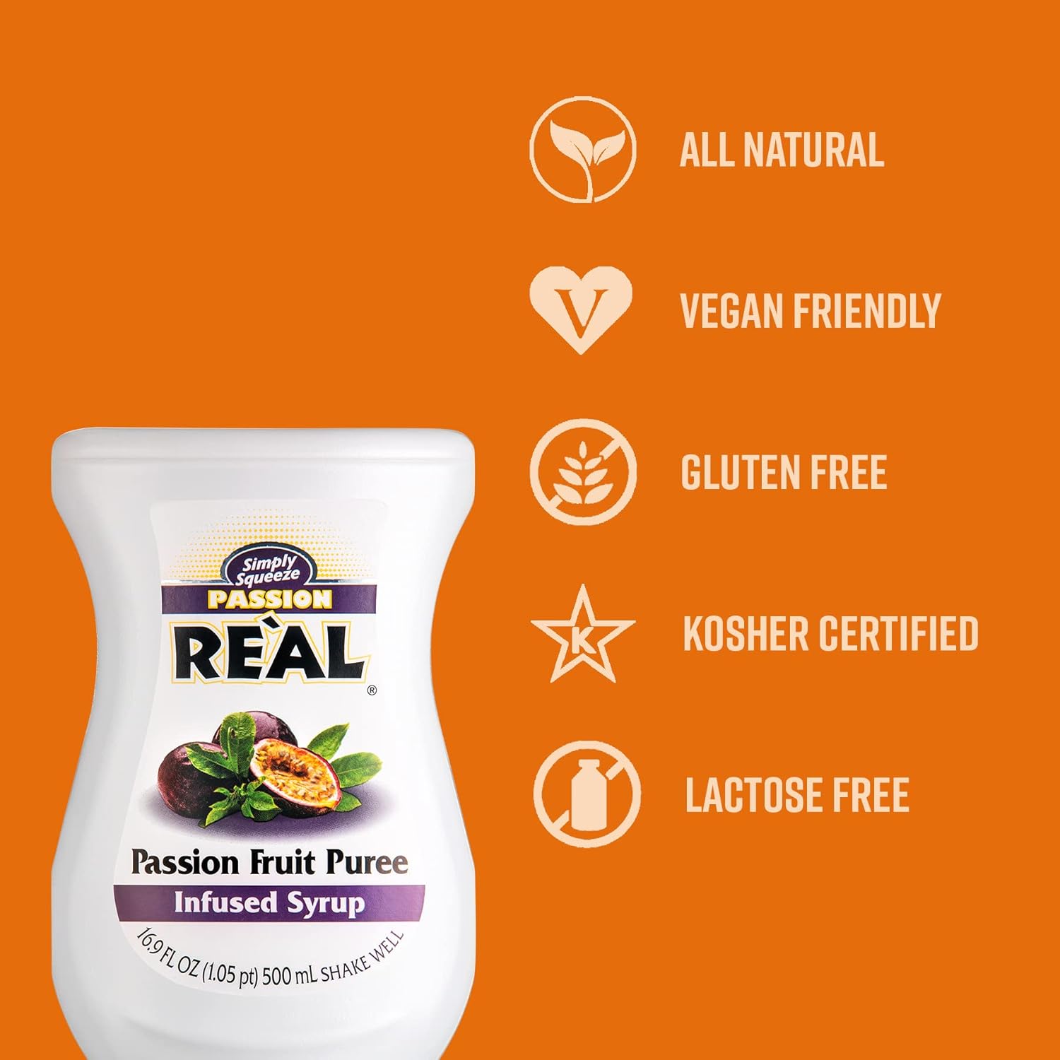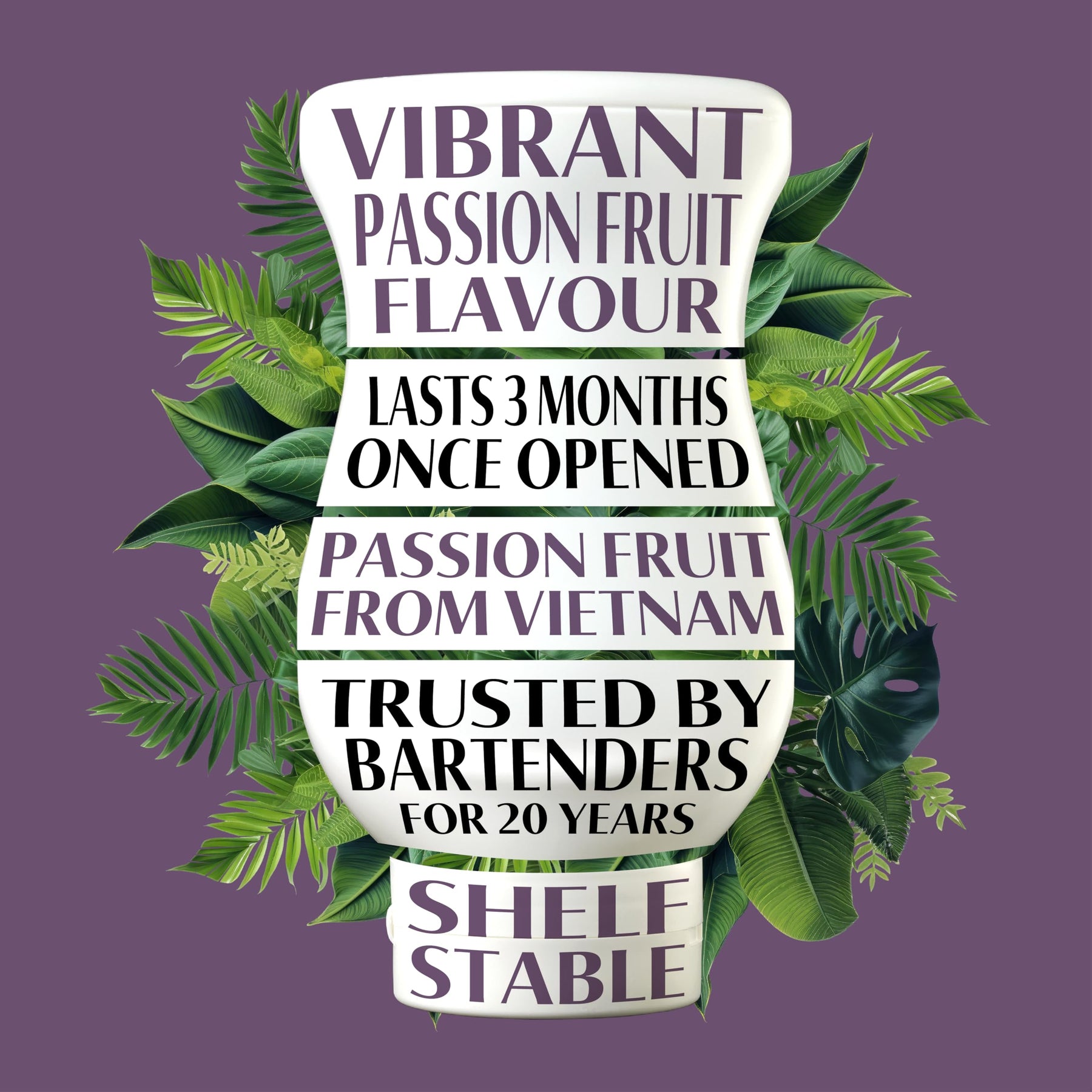 - Premium fruit syrup infused with 39.5% passion fruit puree