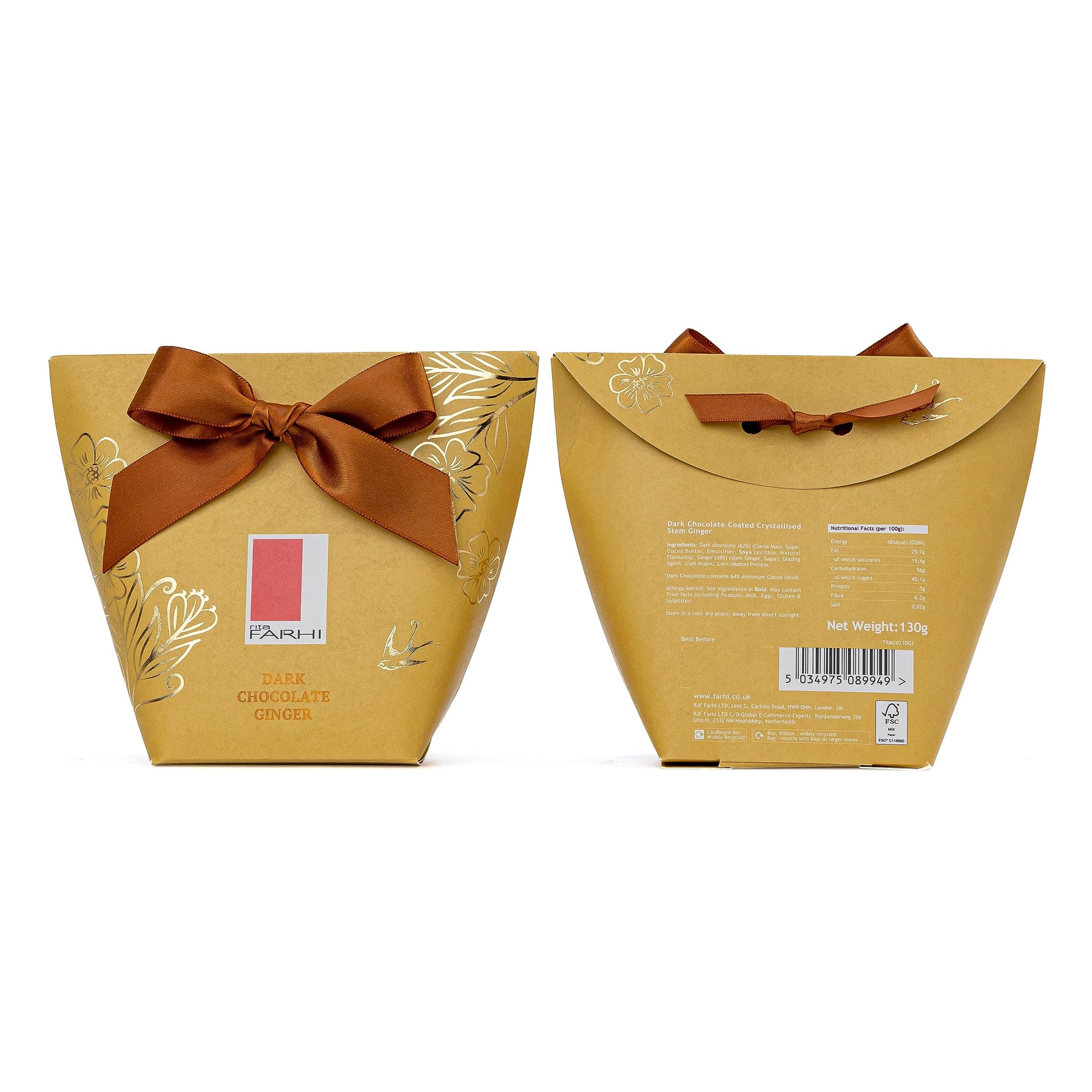 Indulge in the perfect harmony of rich dark chocolate and fiery crystallized stem ginger with Rita Farhi's luxurious chocolate-covered confection. Crafted using a time-honoured recipe, this exquisite treat blends traditional methods with modern craftsmanship, offering a bold and sophisticated flavour profile. Each piece is handcrafted and enrobed in premium Belgian dark chocolate (62%) made from the finest cocoa beans, ensuring a smooth, decadent finish.