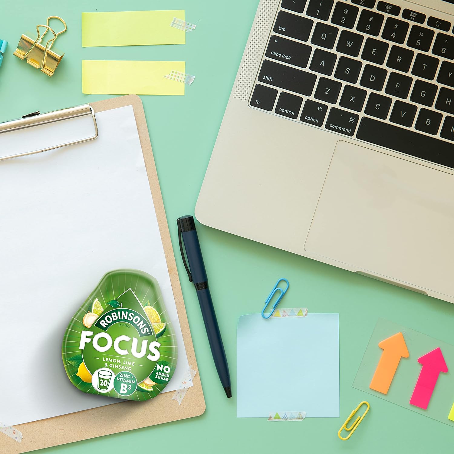 Robinsons Focus Benefit Drops in Lemon, Lime & Ginseng is a super strength squash drink designed to support mental focus*. Made with real fruit juices, including 41% lime juice from concentrate, this refreshing drink contains Vitamin B3 (Niacin) and Zinc to contribute to normal psychological function. With no added sugar and only naturally occurring sugars, it's a smart choice for those seeking a low-calorie beverage with functional benefits. Each 250ml serving contains no more than 3 calories, making it ideal for health-conscious consumers.