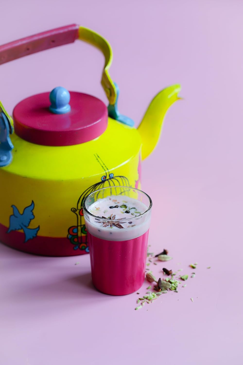 The mix contains green tea powder (5%) and a natural spice blend with beetroot for a signature pink hue when prepared with hot milk. Contains skimmed milk powder and caseinate (milk), making it unsuitable for those with milk allergies.