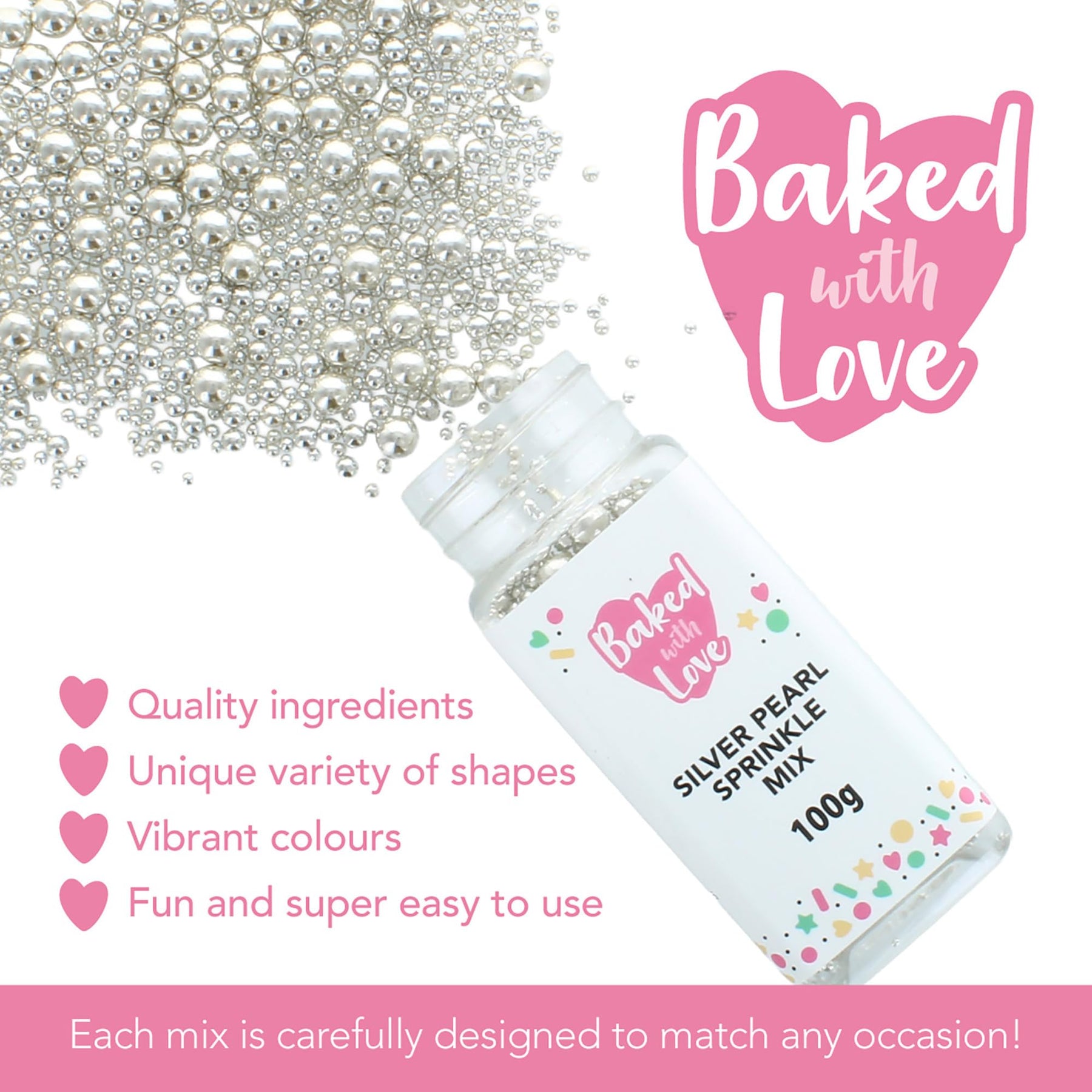 Elevate your baking creations with Baked with Love Silver Pearl Sprinkles, a versatile and eye-catching edible decoration perfect for cakes, cupcakes, cookies, and more. These shimmering sugar pearls add a touch of elegance and instant wow factor to any dessert, making them ideal for birthdays, Valentine's Day, Christmas, Easter, and other special occasions.