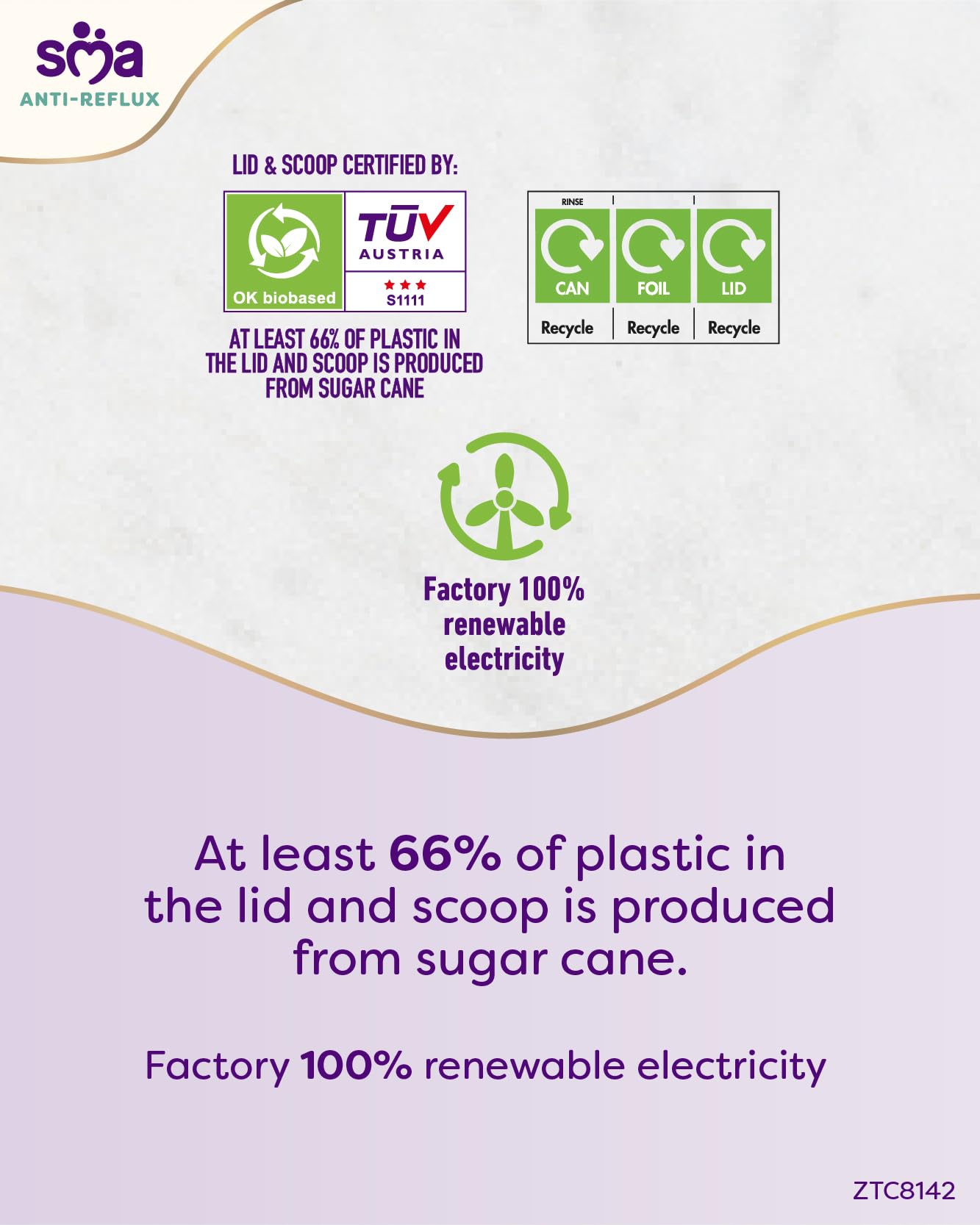 SMA Anti-Reflux Baby Milk Powder is a nutritionally complete formula designed for the dietary management of babies with frequent reflux (regurgitation or spitting up). It can be used as the sole source of nutrition from birth and is suitable for mixing with foods once weaning begins.