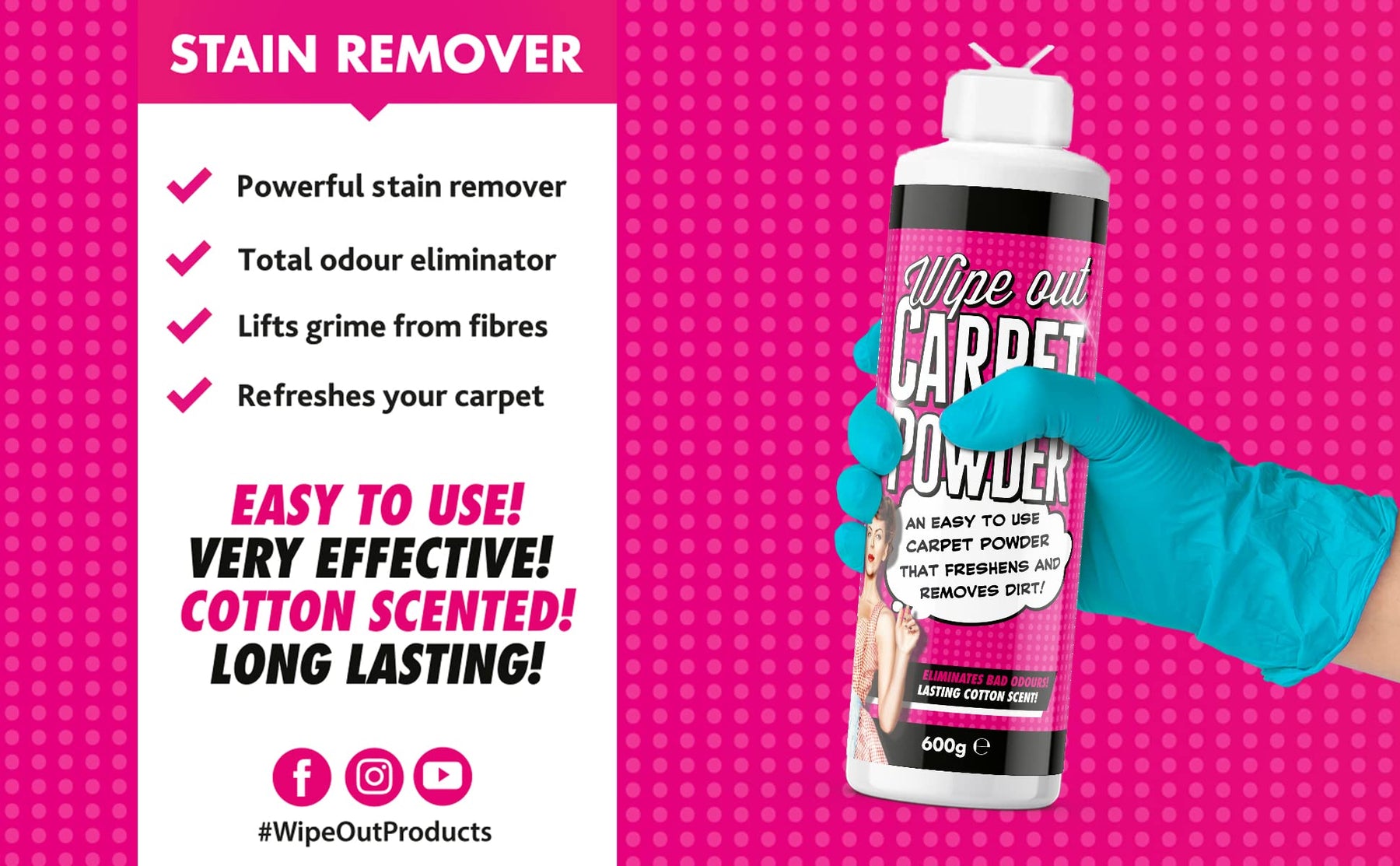 Keep your home fresh and clean with Wipeout Magic Carpet Powder – the trusted choice for effective, UK-made carpet care.