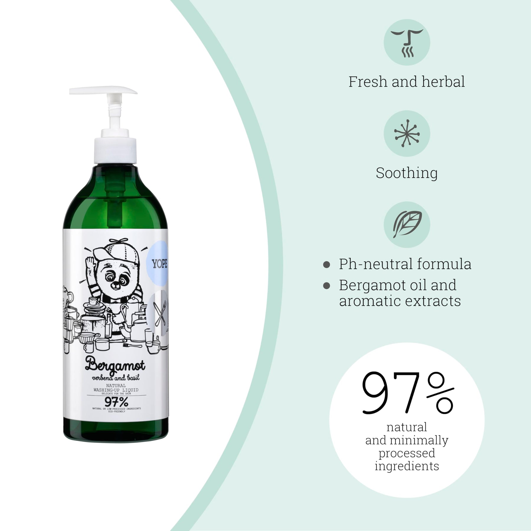Yope - Natural Washing-Up Liquid | Bergamot & Basil | 750 ml