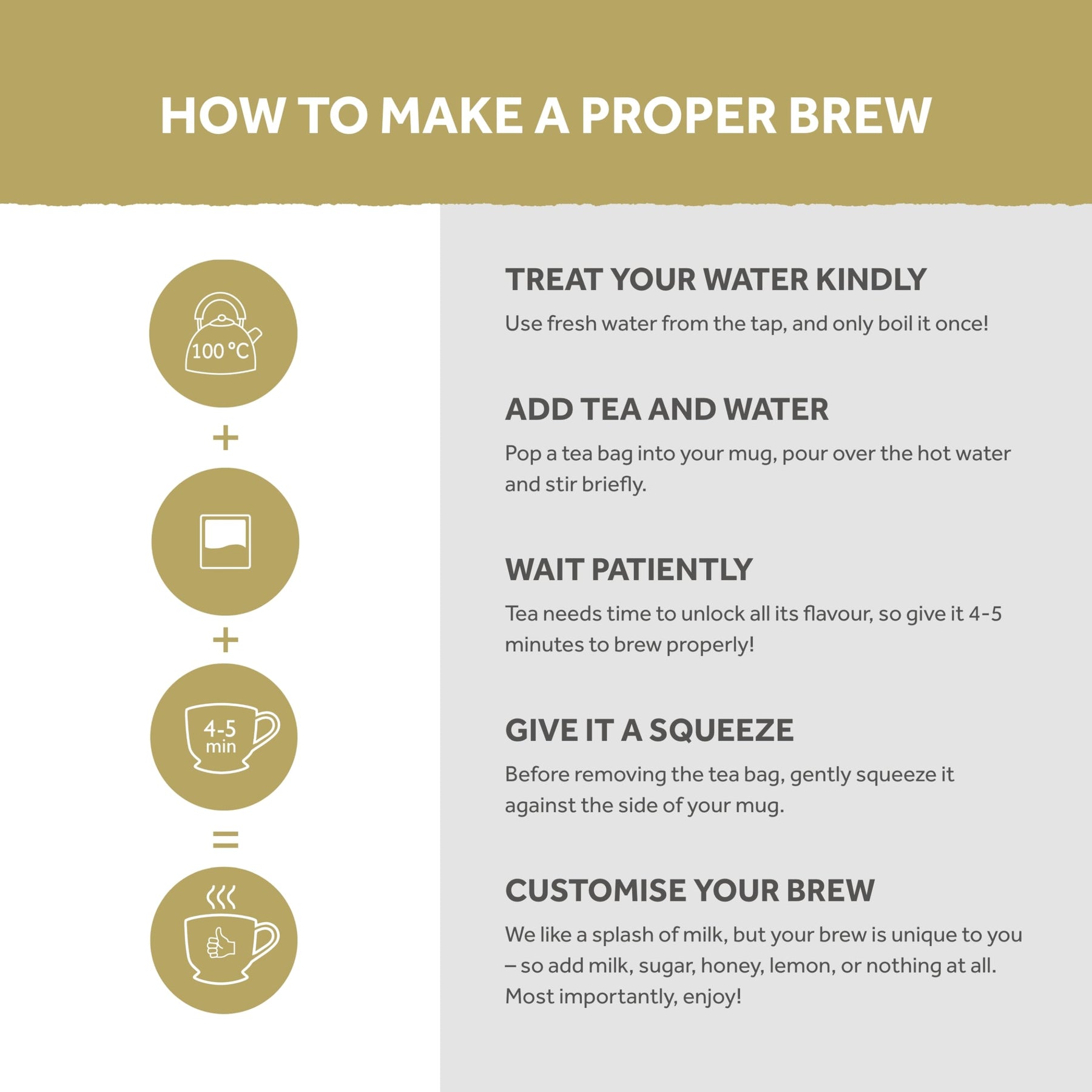 To enjoy the perfect cup, use one tea bag and freshly boiled water. Infuse for 4-5 minutes, then serve pure or with milk. Each box contains 160 tea bags, and this pack includes 6 boxes — a total of 960 tea bags — ensuring you're always stocked for any occasion.
