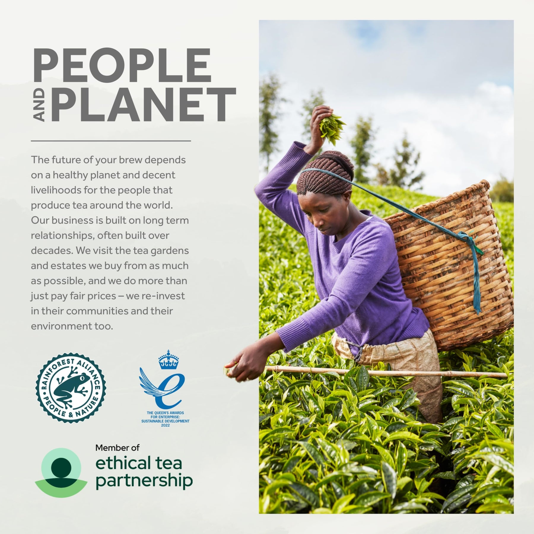 As a family business founded in 1886 in Harrogate, Yorkshire, we remain committed to fairness, flavour, and quality. We are members of the Ethical Tea Partnership and Rainforest Alliance Certified, supporting sustainable practices and fair trade. We pay sustainable prices, invest in tea-growing communities, and maintain long-term relationships with growers to ensure people and the planet are respected.