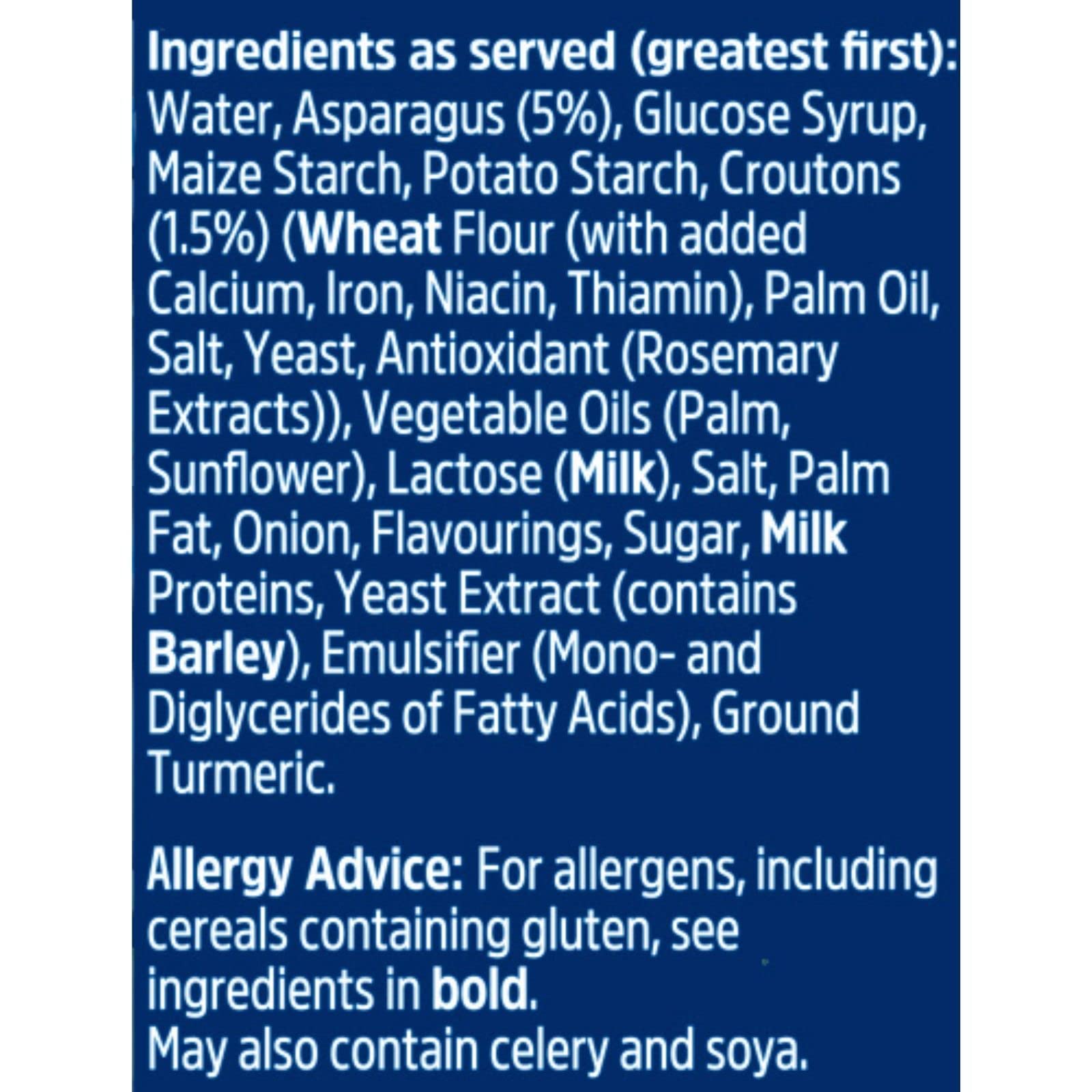 - Cream of asparagus flavour with crunchy croutons