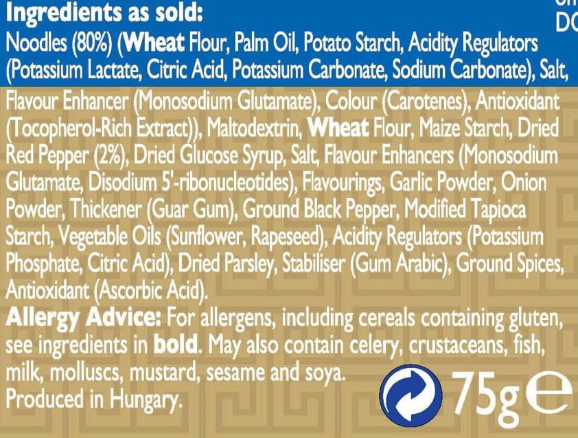• Made with 80% noodles containing WHEAT flour and palm oil