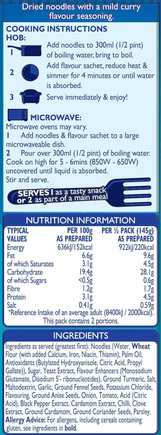 Batchelors Super Noodles in Curry Flavour deliver a satisfying, savoury snack ready in just 4 minutes. Made with a blend of noodles and bold curry seasoning, this instant meal is perfect for quick on-the-go eating or a light meal at home.