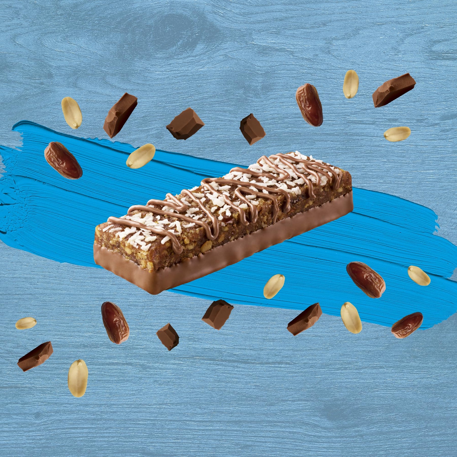 Indulge in the tropical taste of paradise with a twist—Bounty Triple Treat snack bars. These delicious bars combine the classic coconut and milk chocolate flavor you love, now packed with even more fruit and nuts. Each bar is generously filled with date paste, raisins, and peanuts, topped with desiccated coconut, and richly dipped and drizzled in smooth milk chocolate. With over 75% fruit and nut content, it's a satisfying snack that's perfect for mid-morning energy or an afternoon treat.