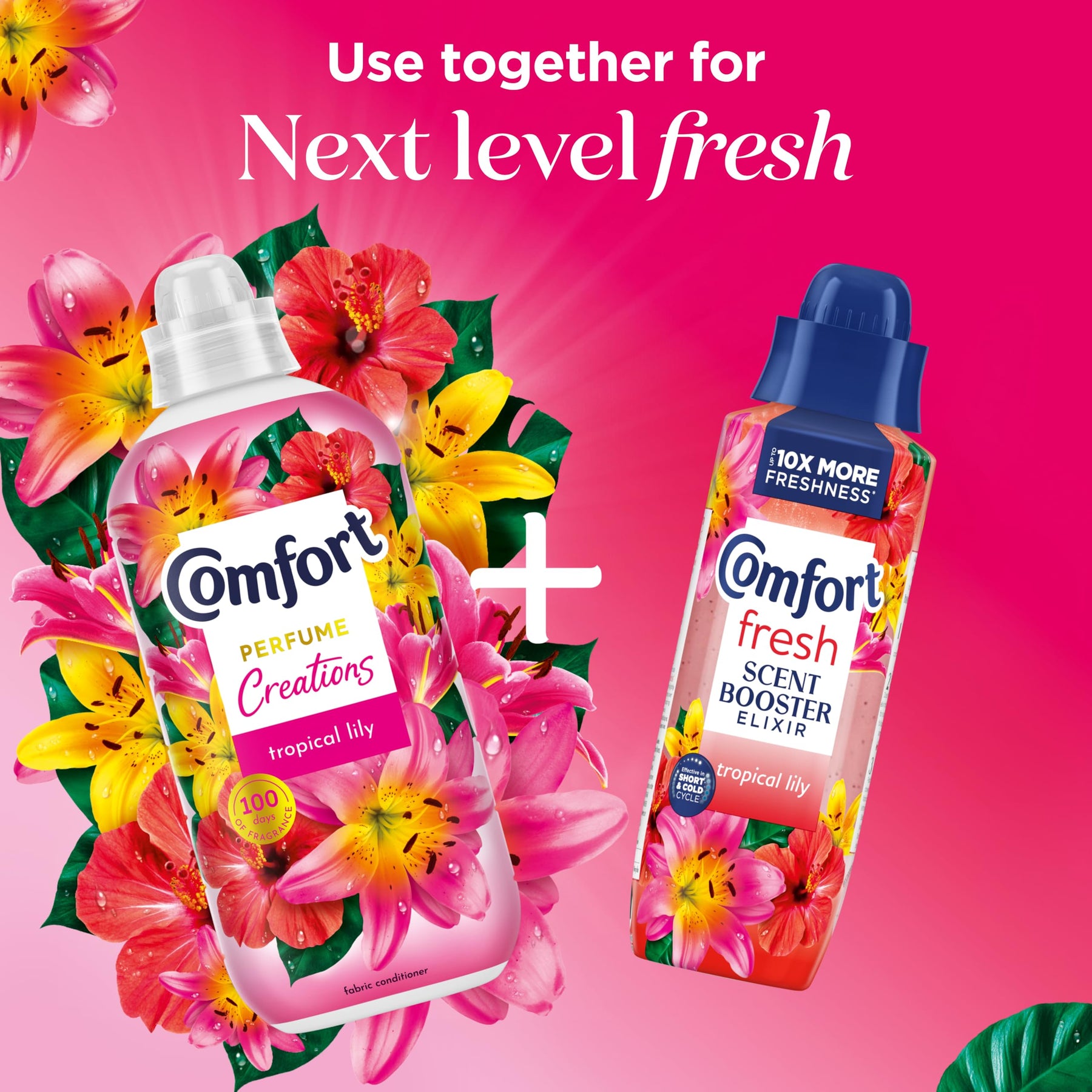 Experience next-level freshness with Comfort Perfume Creations Tropical Lily Fabric Conditioner, a luxurious liquid fabric softener that envelops your clothes in a long-lasting, honeyed floral fragrance for up to 100 days after line drying and storage. Infused with motion-activated technology, this fabric conditioner releases a captivating burst of tropical lily scent with every movement, keeping your laundry smelling fresh all day long.