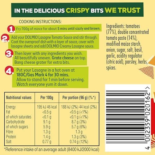 • Can be paired with Dolmio Creamy White Lasagne Sauce for a layered, crispy finish
