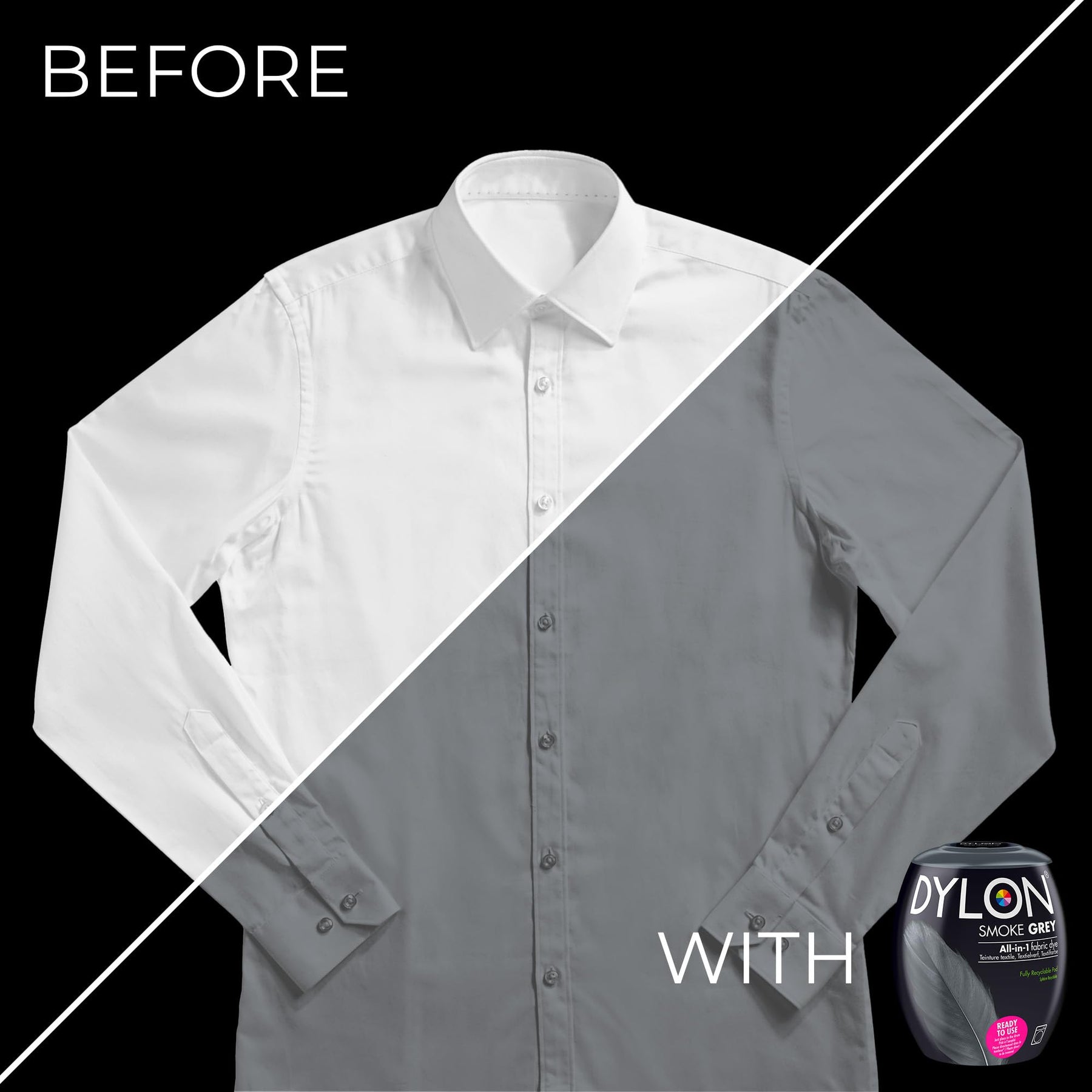 • Ready-to-use fabric dye pod for washing machine application