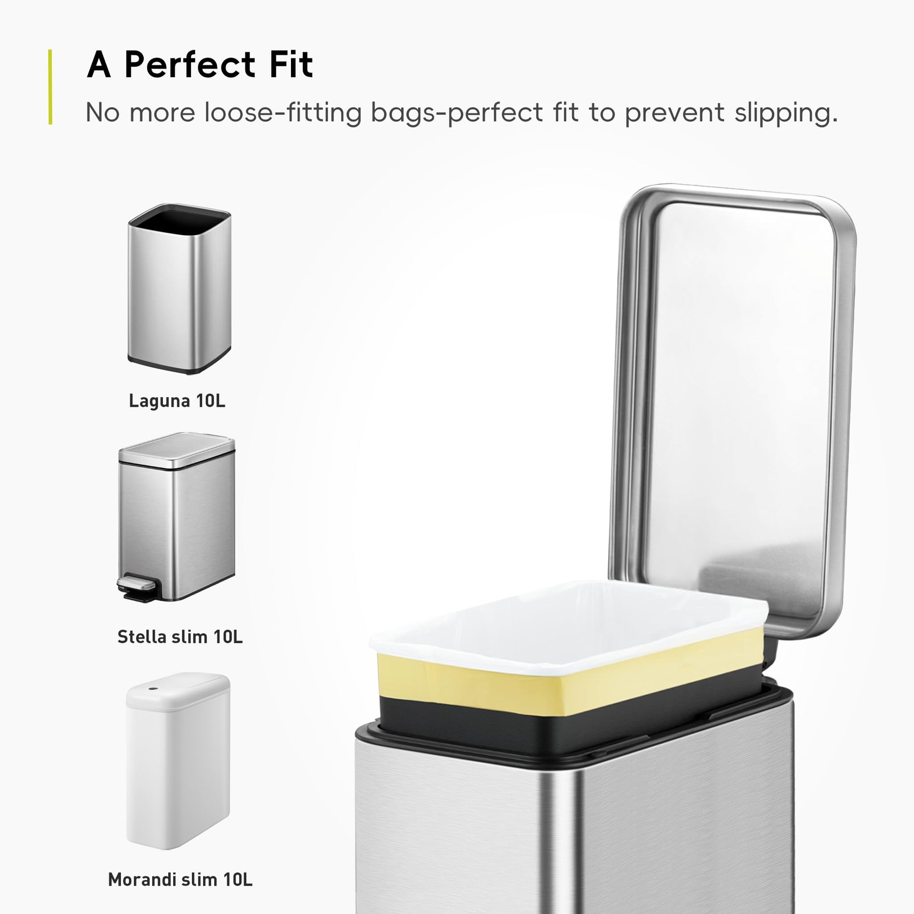 Featuring integrated drawstring tie handles, these bags make lifting, tying, and carrying kitchen waste safe and simple—no more messy spills or torn bags. Designed for a perfect fit in the EKO Stella Slim Step Bin 10L, they eliminate unsightly overhang for a neater kitchen space. With dimensions of 40 x 45cm and an open perimeter of 76cm, they suit bins with a 7-10 litre capacity.