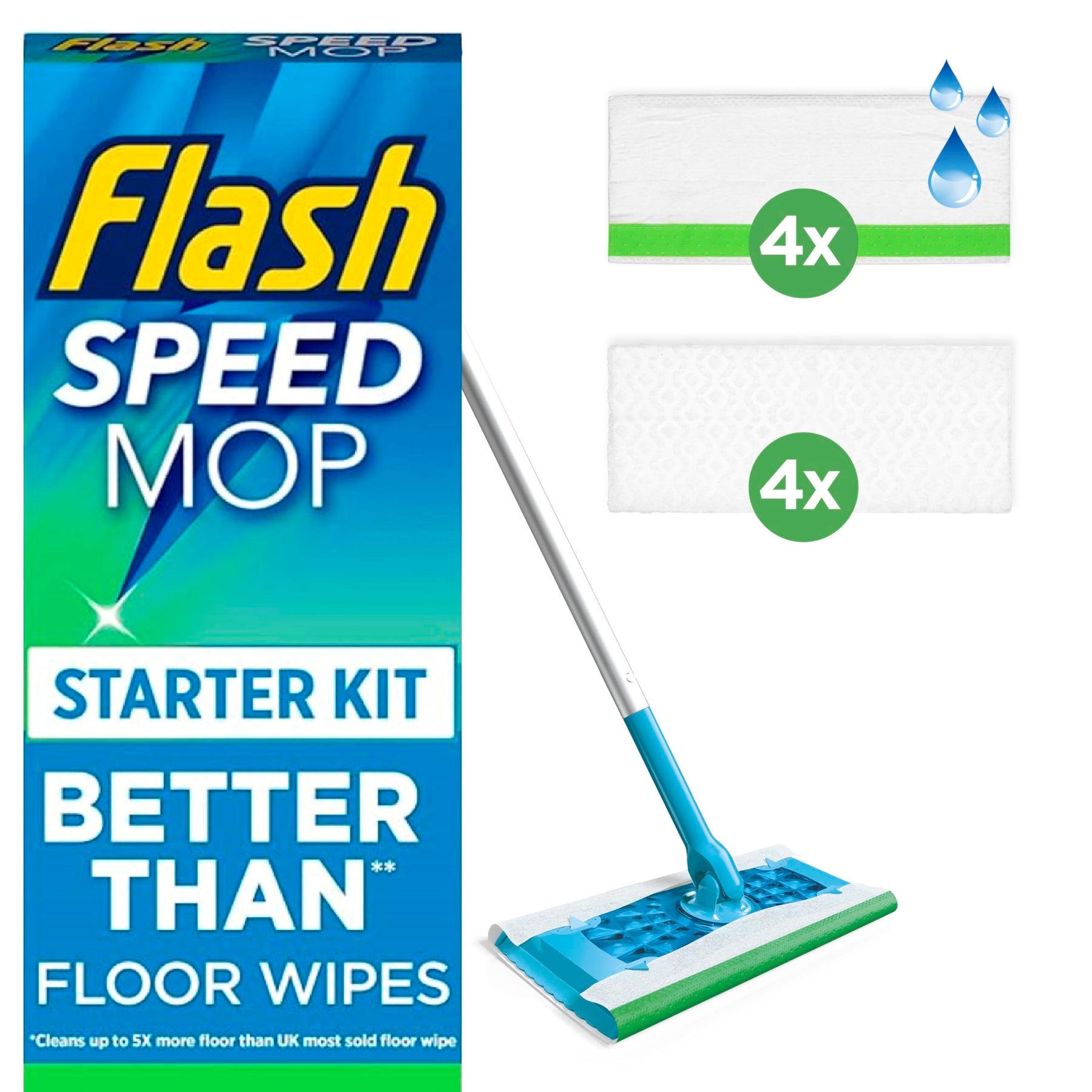 Flash Speedmop Floor Cleaner Starter Kit (1 Handle + 4 Wet & 4 Dry Refills) - Fast, Easy & Hygienic Cleaning for Hard Floors