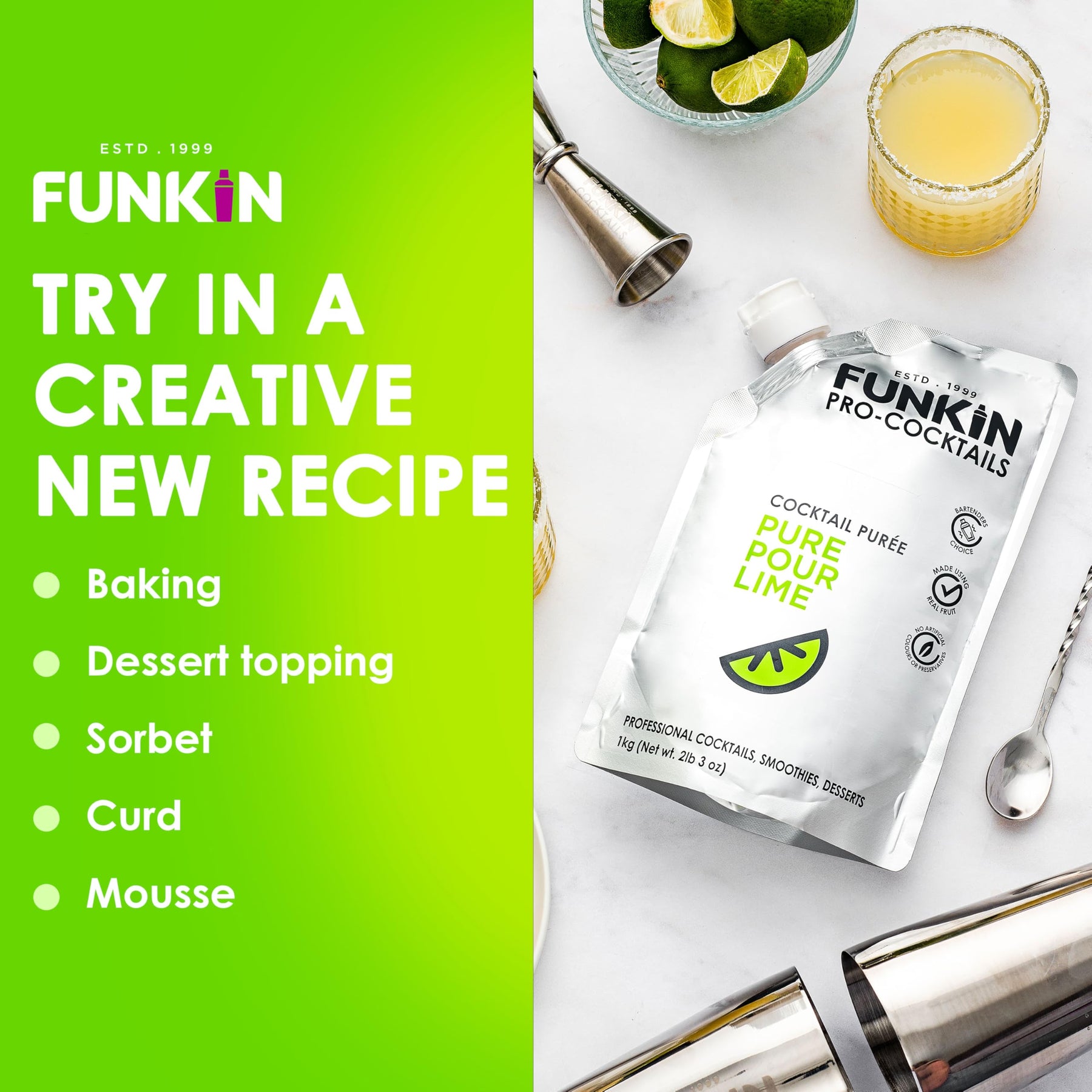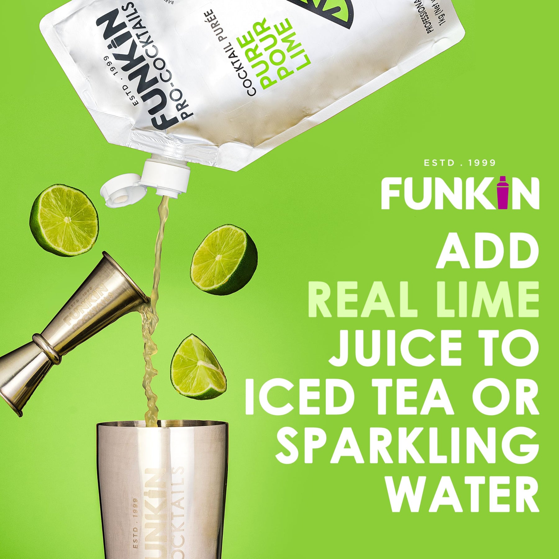 Elevate your cocktails and recipes with the vibrant taste of real lime juice from Funkin Pro.