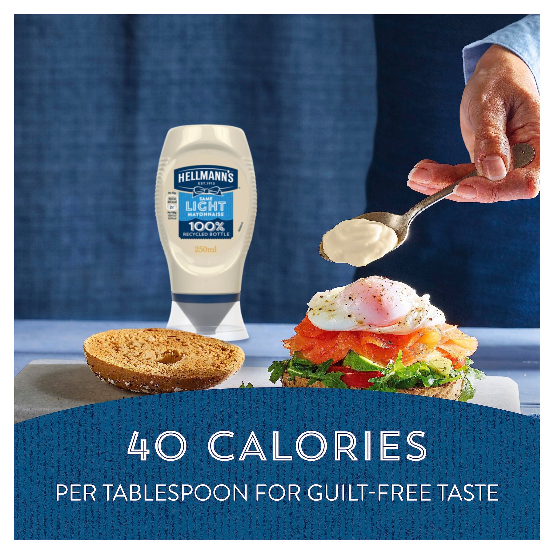 Hellmann's Light Mayonnaise brings the rich, creamy taste you love with 60% fewer calories and 65% less fat than standard mayonnaise, making it a smarter choice for everyday meals. Crafted with free-range eggs and free from artificial colours and preservatives, it's a source of Omega 3 and suitable for vegetarians.
