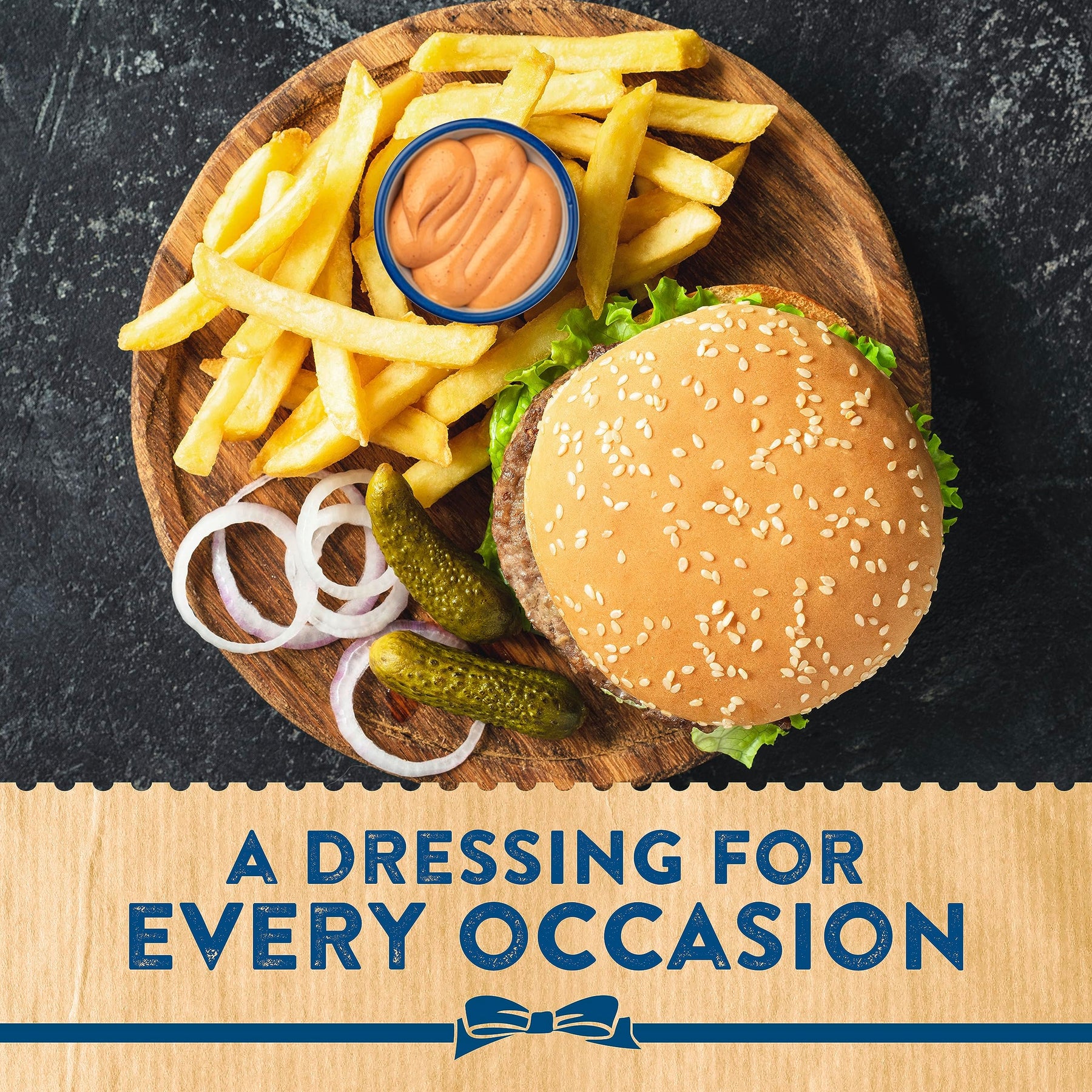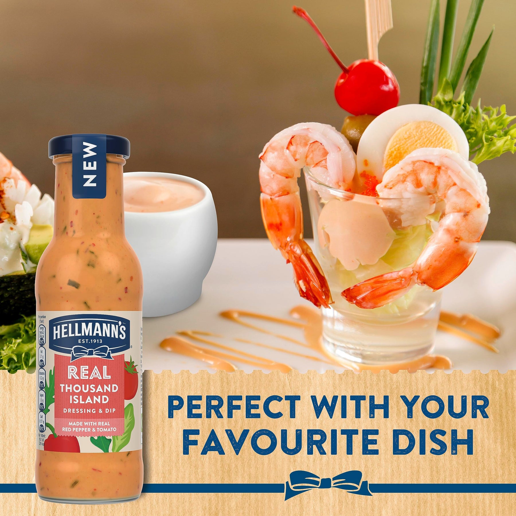 Hellmann's Real Thousand Island Salad Dressing & Dip brings a rich, tangy taste and creamy texture to your meals, made with real ingredients like red pepper and tomato. Perfect for enhancing salads, sandwiches, and seafood dishes, this versatile condiment is also ideal as a dip for chips and vegetable sticks.