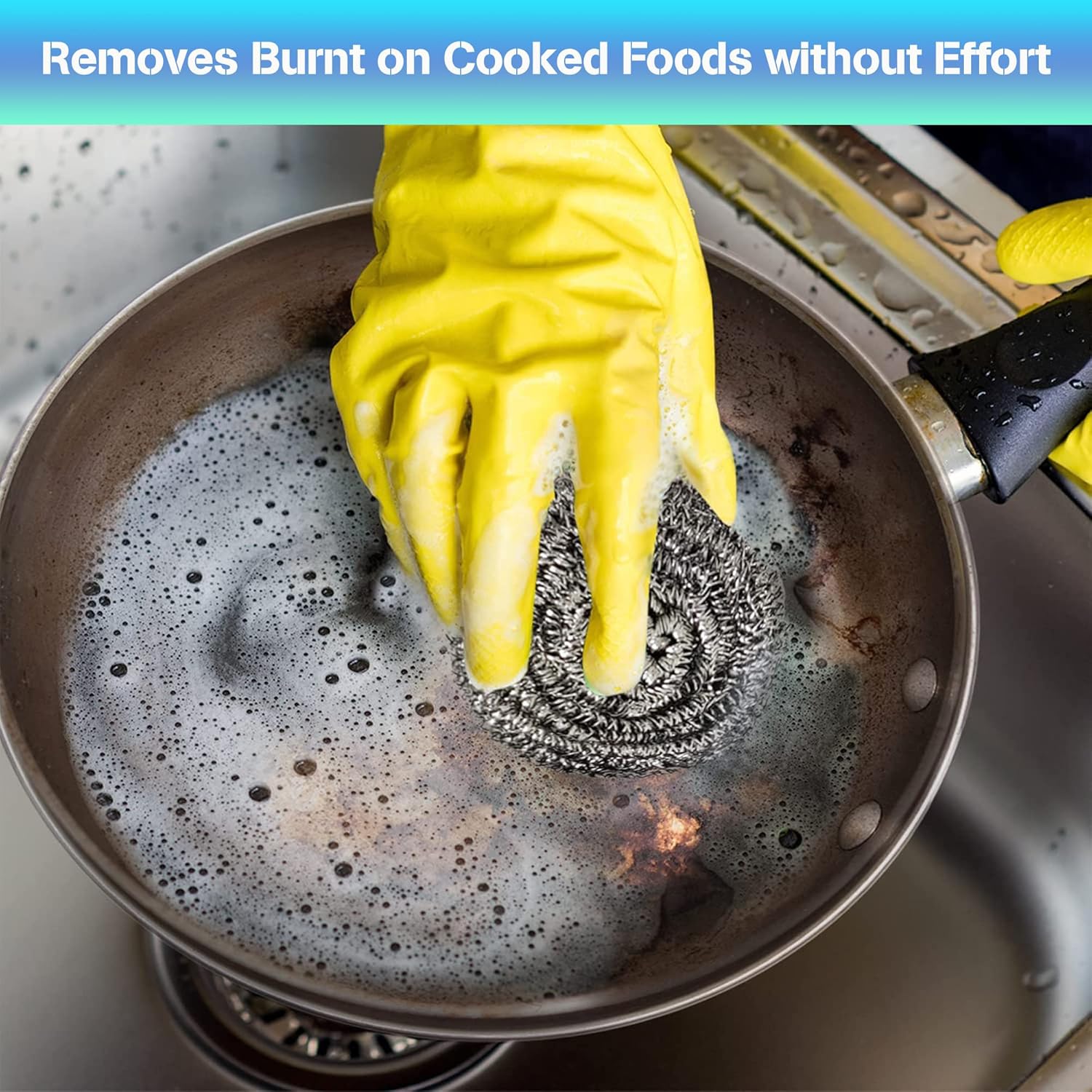 - 6-pack of heavy-duty stainless steel scourers for durable, long-lasting use