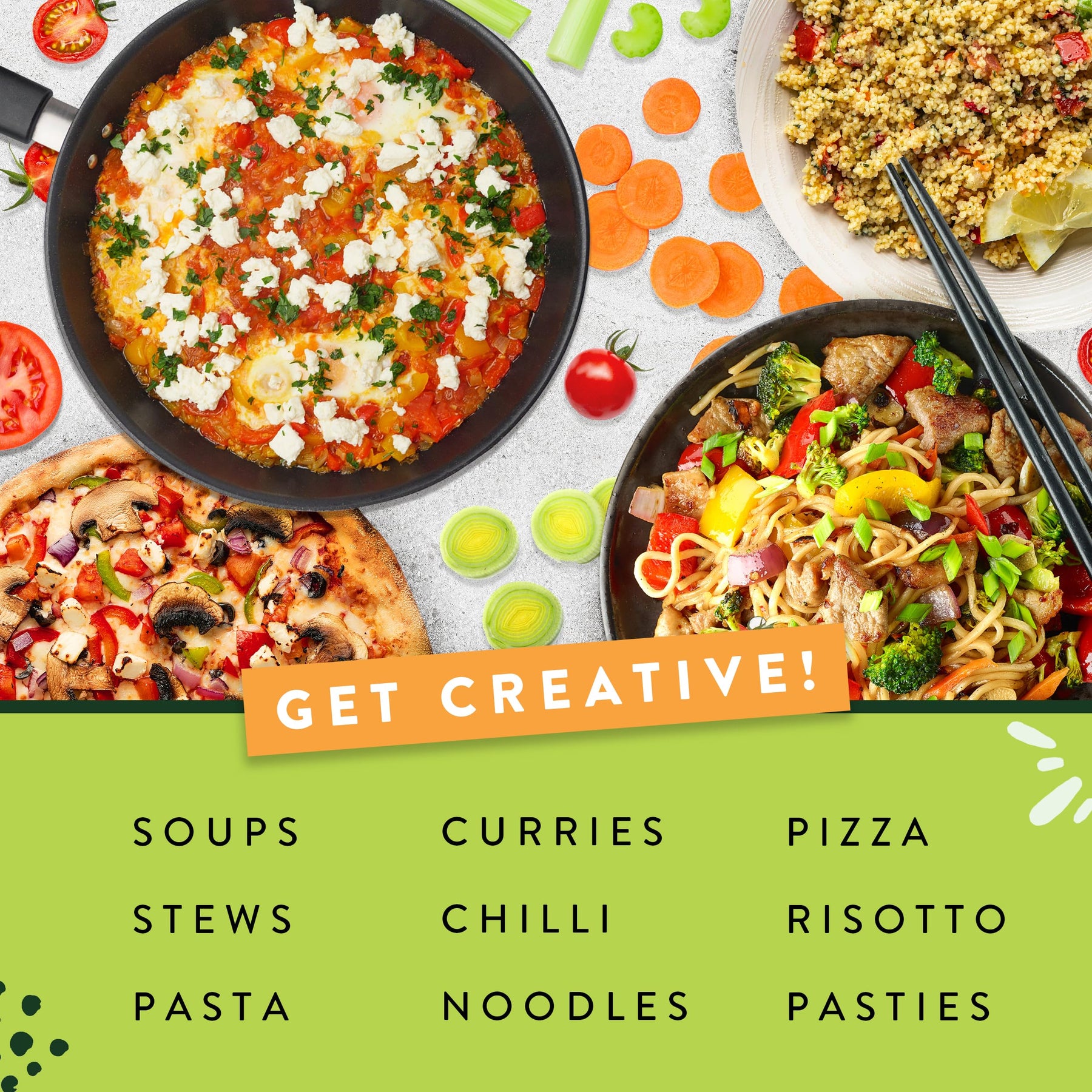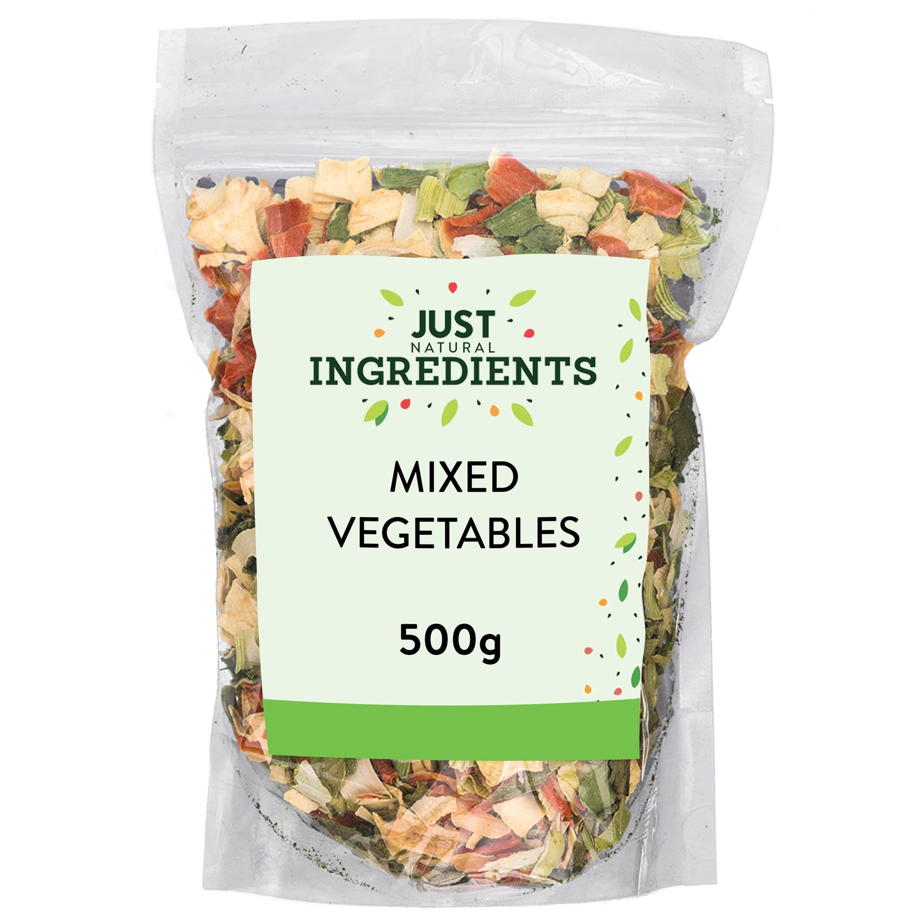 JustIngredients Mixed Vegetables is a convenient, dehydrated vegetable blend perfect for soups, stews, curries, and casseroles. Sourced from high-quality organic ingredients, this dried veg mix requires no prep and offers a long shelf life, making it ideal for home cooking, camping, or travel.