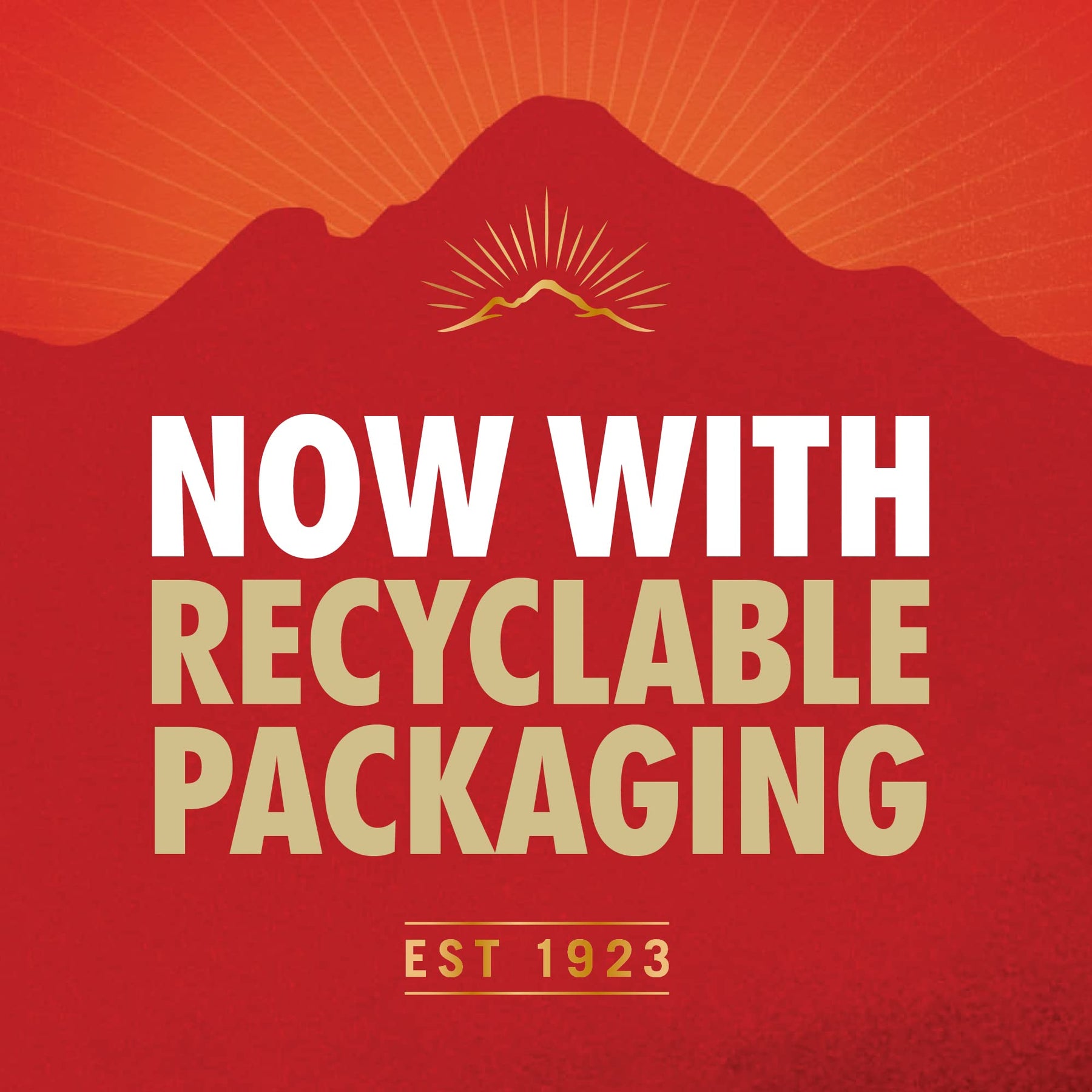 The packaging is fully recyclable, including the tin, foil, and lid, making it a more sustainable choice. This new recipe contains less sugar without compromising on taste, ideal for serving to visitors or colleagues. Not suitable for pregnant women or those sensitive to caffeine.