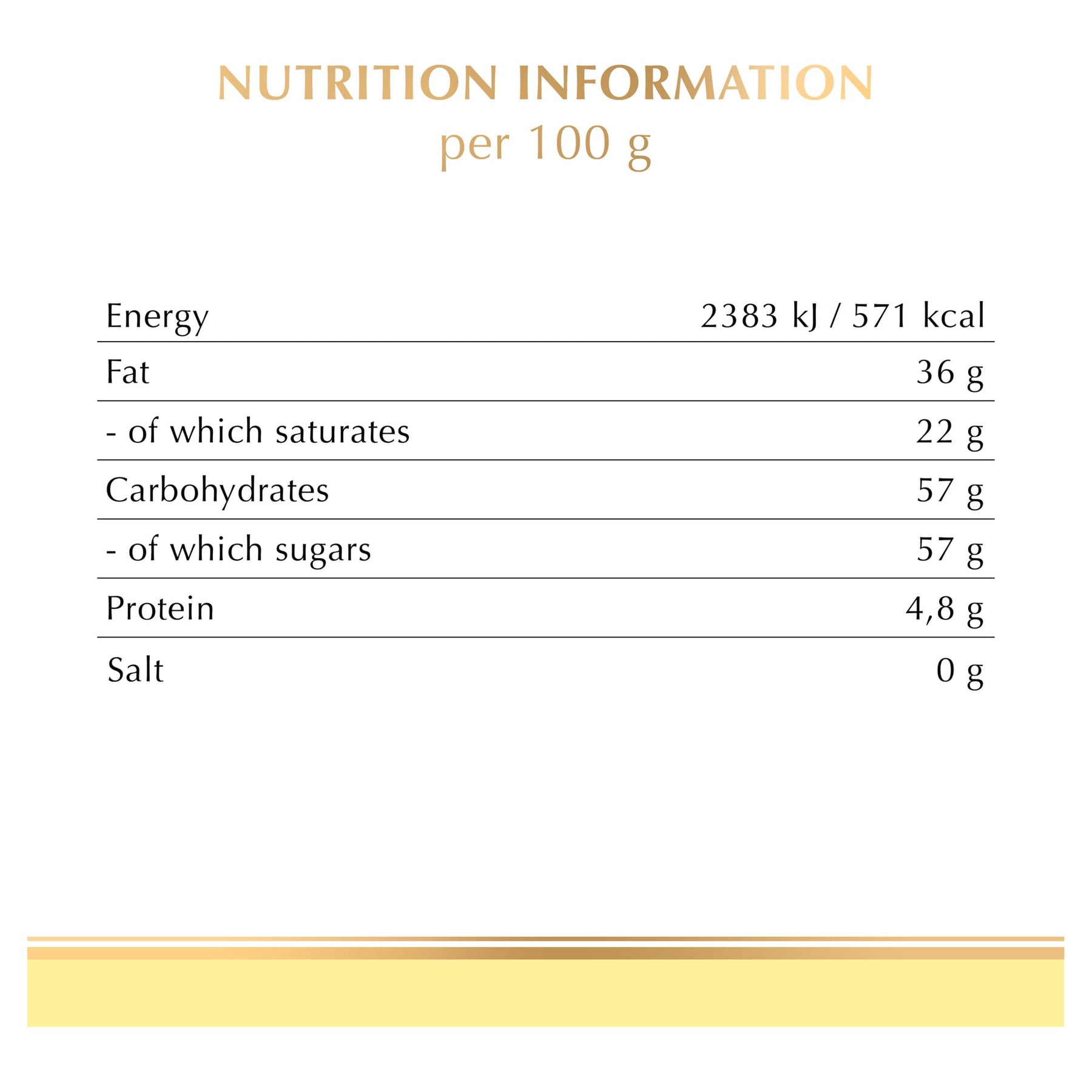 Enjoy this refined chocolate as an everyday indulgence or on-the-go treat. For a sophisticated pairing, enjoy with a cup of jasmine tea or Americano to enhance the delicate vanilla notes. This product contains less than 20 mg/kg gluten and is considered gluten-free under UK and EU regulations.