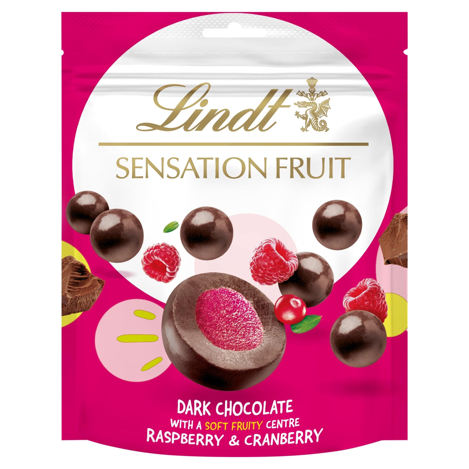 Lindt Fruit Sensation Raspberry and Cranberry Dark Chocolate Pouch 150g