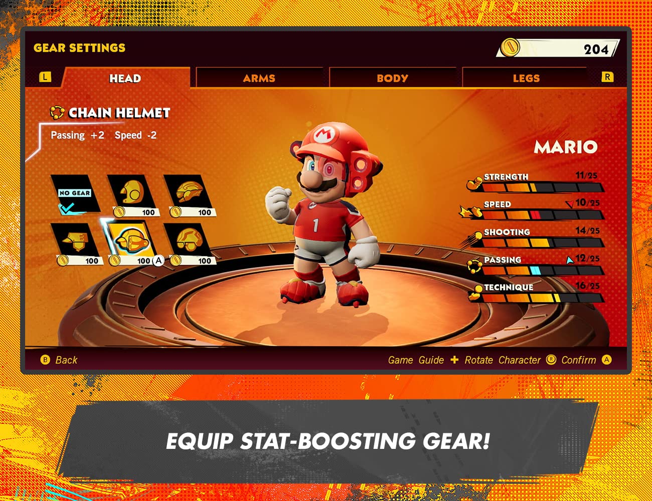 - Customize your team with gear that affects both appearance and stats such as speed, strength, and pass accuracy