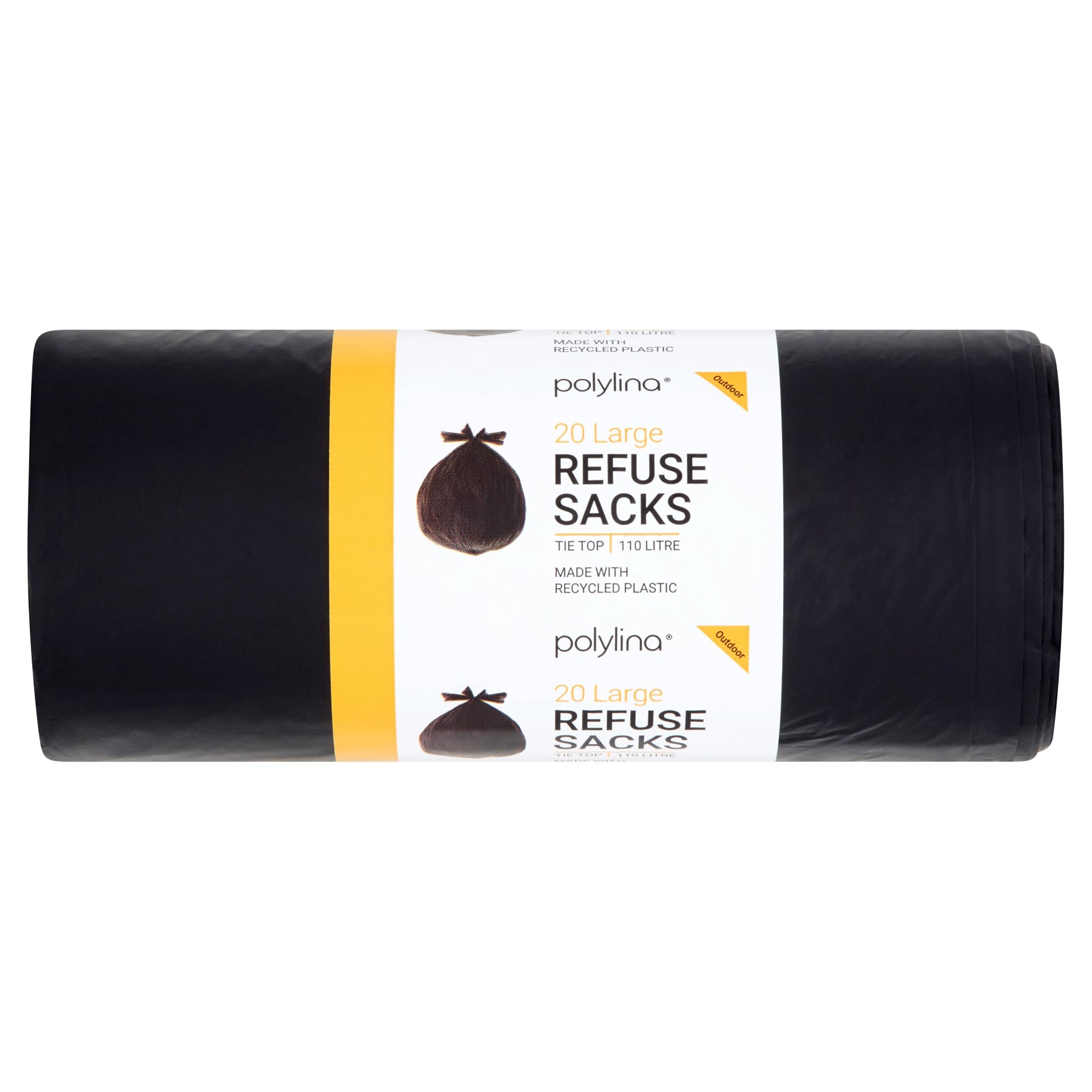 Polylina 20 Pack 110L Tie Top Heavy Duty Bin Bags, Black, Made in UK from Recycled Plastic