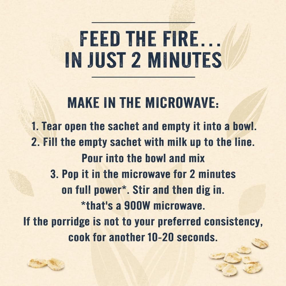 Preparation Instructions:- Microwave: Empty sachet into a microwaveable bowl, add 180ml of milk (measured using the sachet), and heat on full power (min 800W) for 2 minutes. Stir and enjoy.
