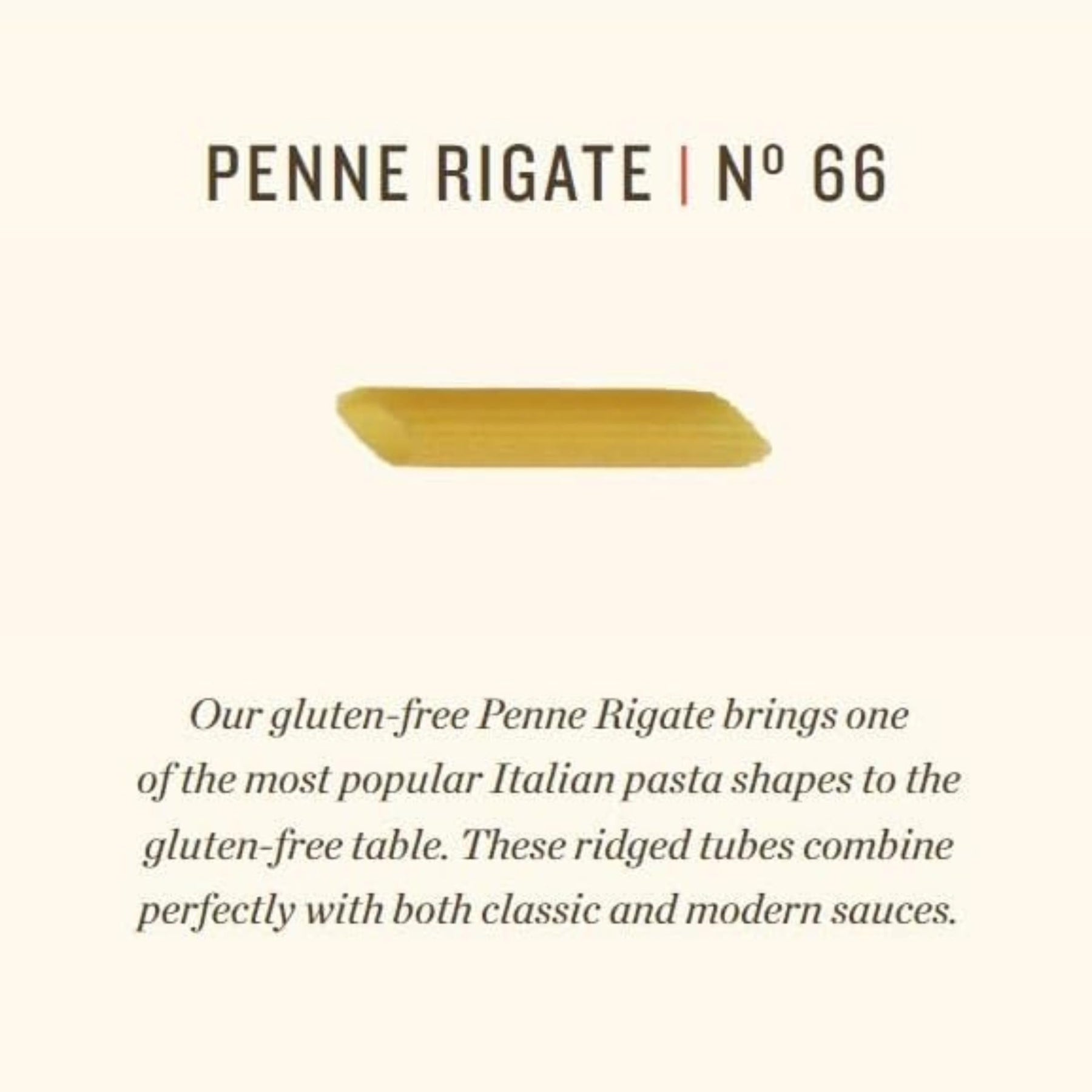 - Traditional penne rigate shape with ridges for optimal sauce adherence
