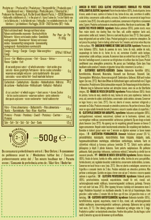 - Gluten-free gnocchi crafted with organic ingredients