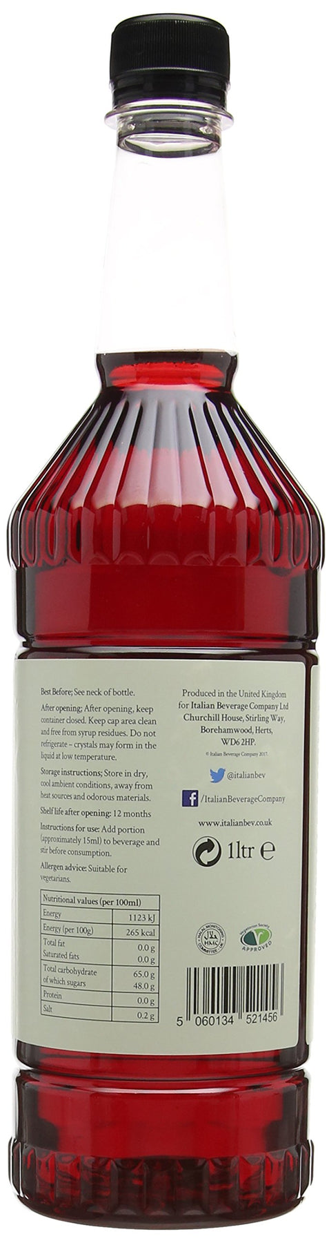• Ingredients: Sugar, Water, Glycerine, Natural Flavouring, Acid (Citric Acid), Colour (E163), Salt, Preservative (E202)
