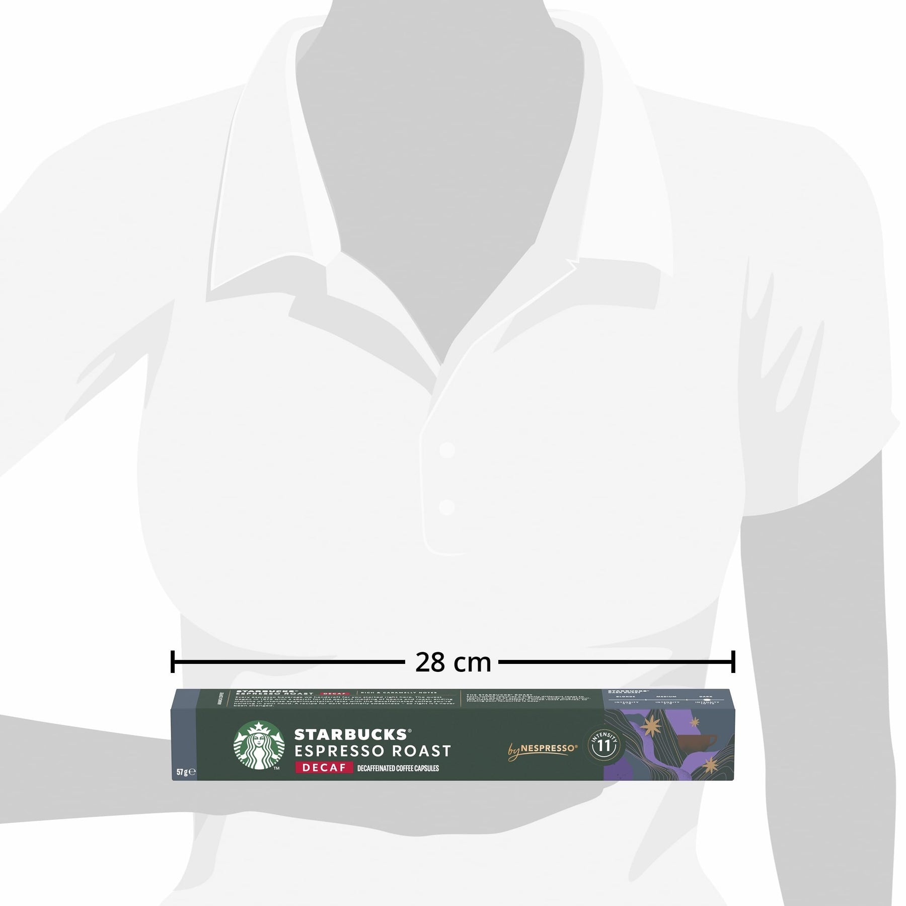 Enjoy the rich, caramelly notes of STARBUCKS Decaf Espresso Roast from the comfort of your home. Expertly crafted for Nespresso machines, these dark roast coffee capsules deliver a bold, full-bodied flavor with the signature intensity of an authentic espresso roast—without the caffeine.