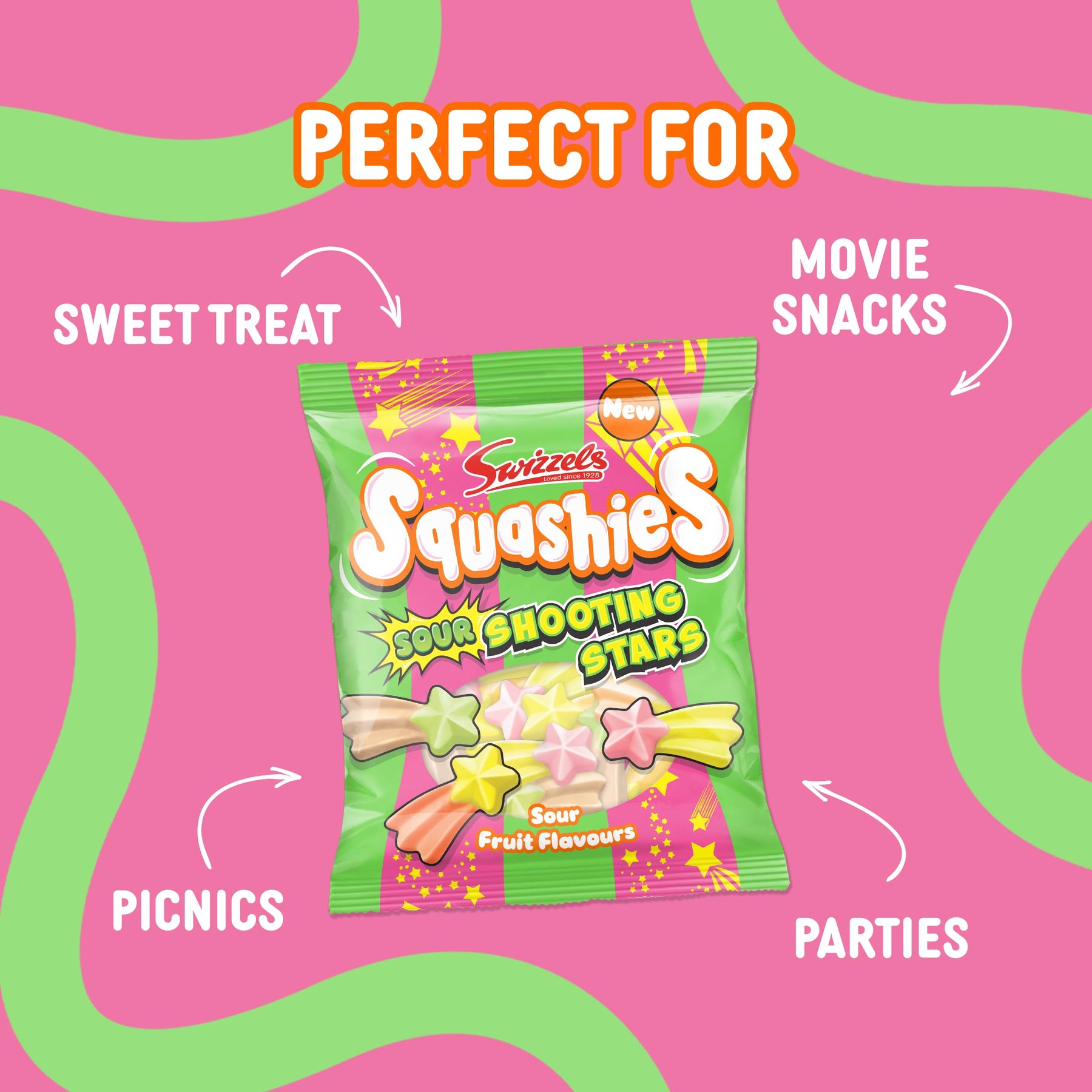 Indulge in the zesty, chewy fun of Swizzels Squashies Sour Stars – a must-have for lovers of sour and fruity sweets.