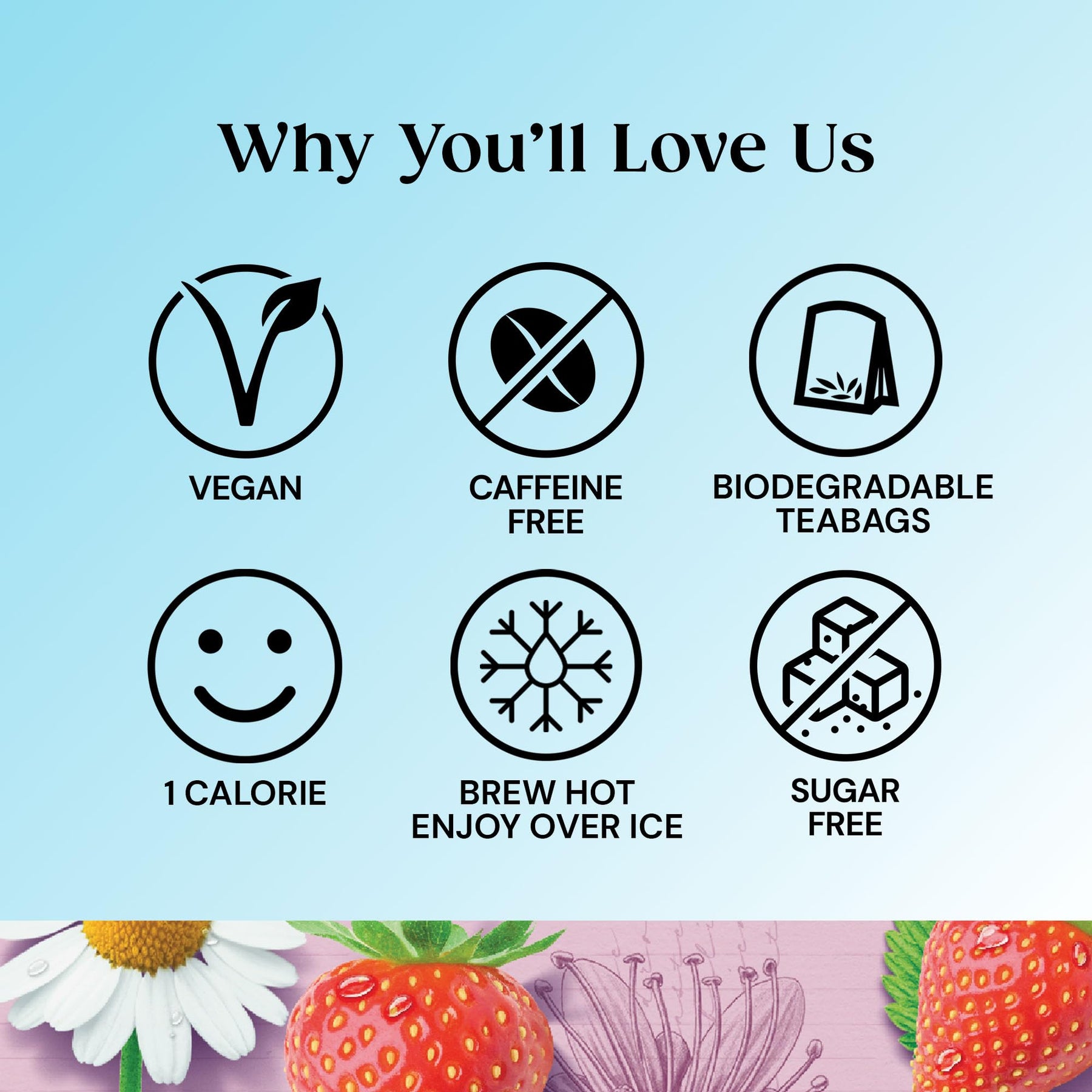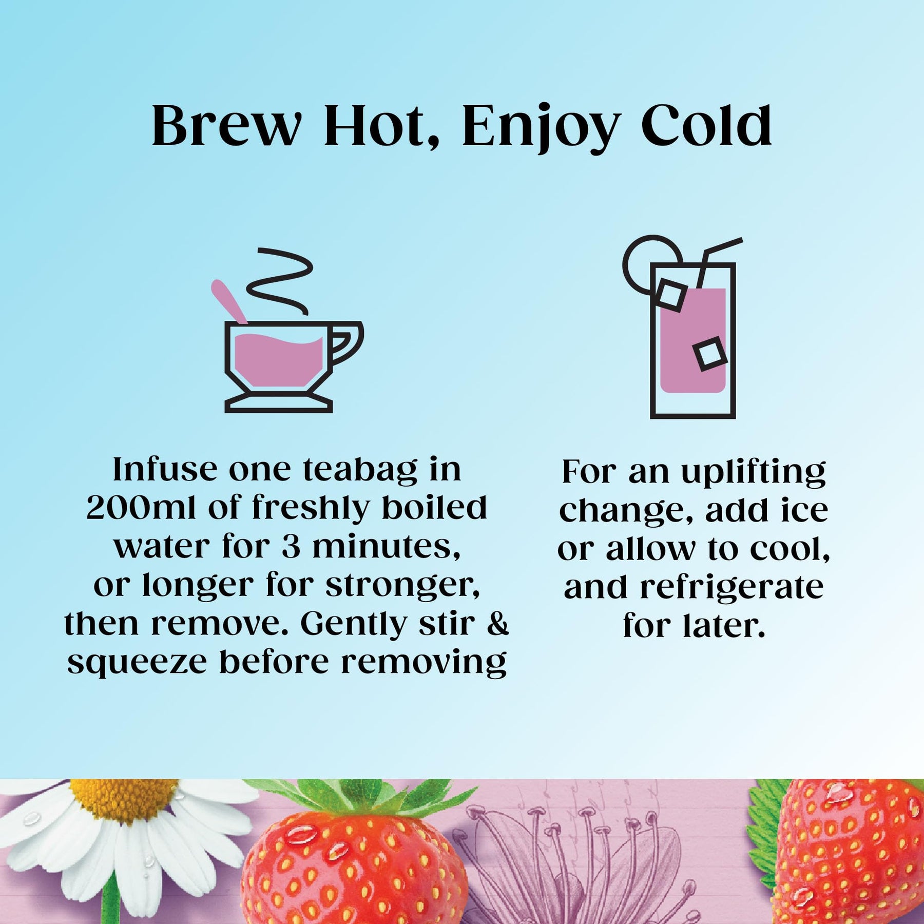 • Herbal tea infusion with natural strawberry flavouring and botanicals