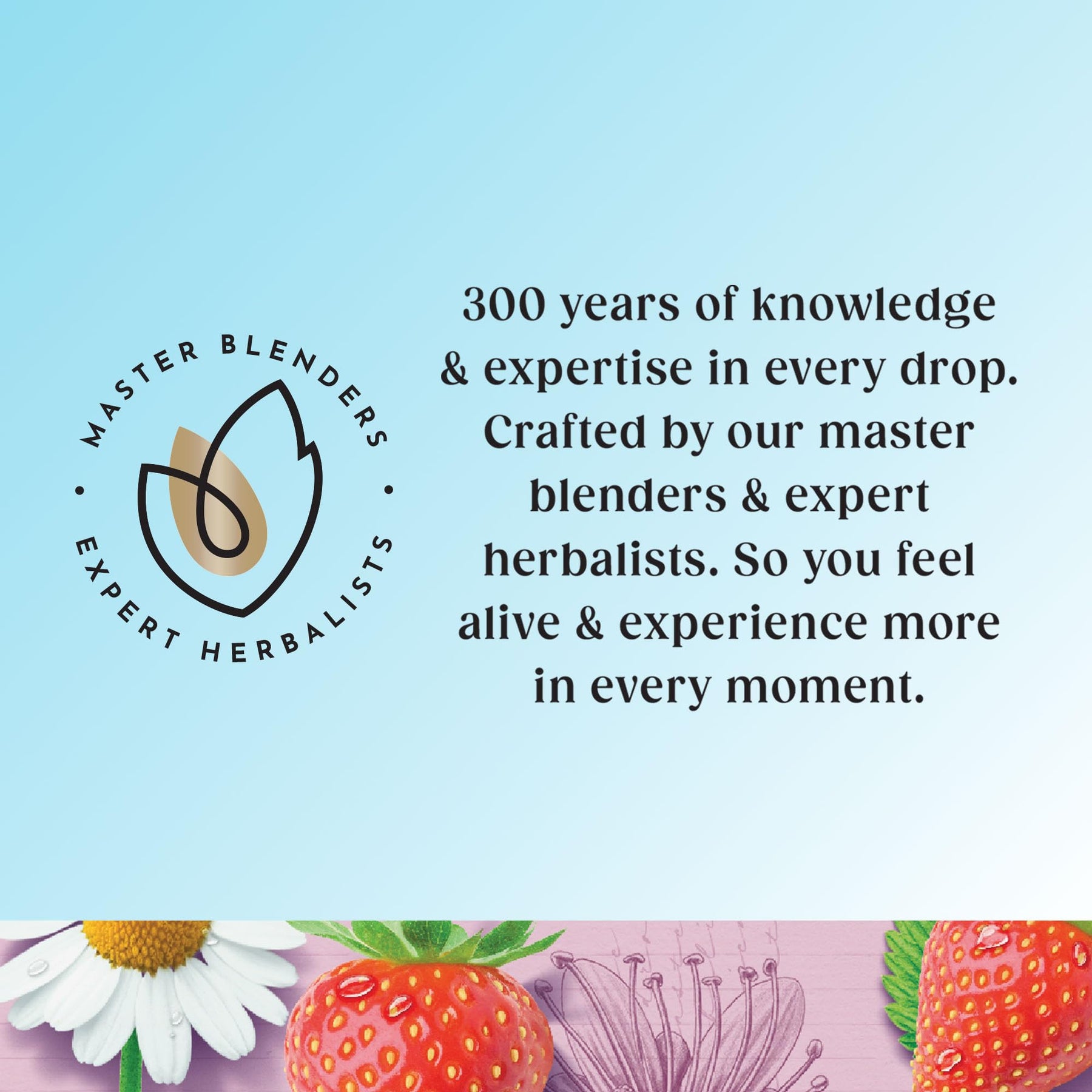 • Ingredients: Lemon Balm (43%), Camomile (18%), Limeflower (13%), Natural Strawberry Flavouring with other Natural Flavourings (12%), Liquorice Root, Beetroot, Vitamin B12, Natural Flavouring