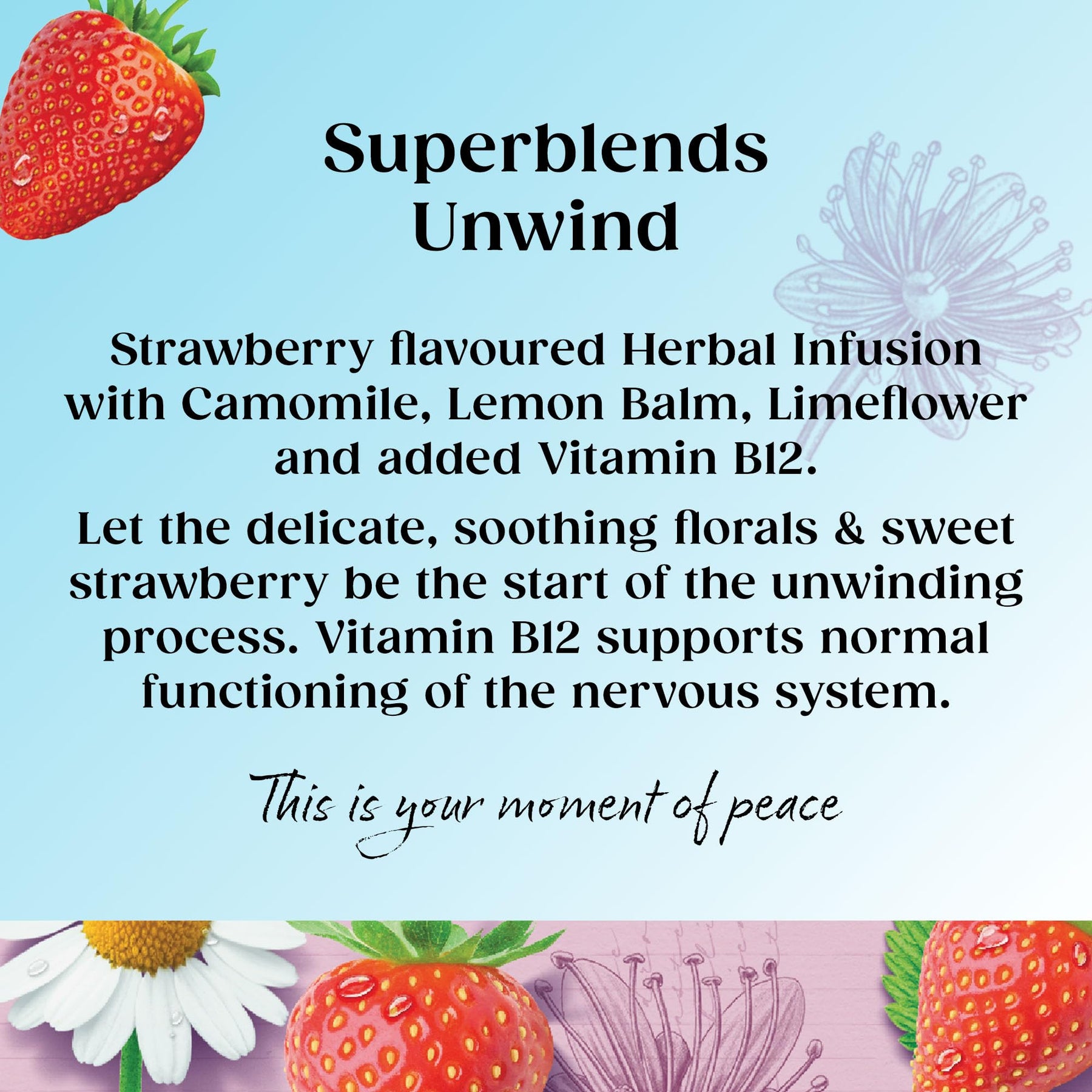 Twinings Superblends Unwind Tea - Strawberry Herbal Infusion with Camomile, Lemon Balm, Limeflower & Vitamin B12, 80 Biodegradable Tea Bags