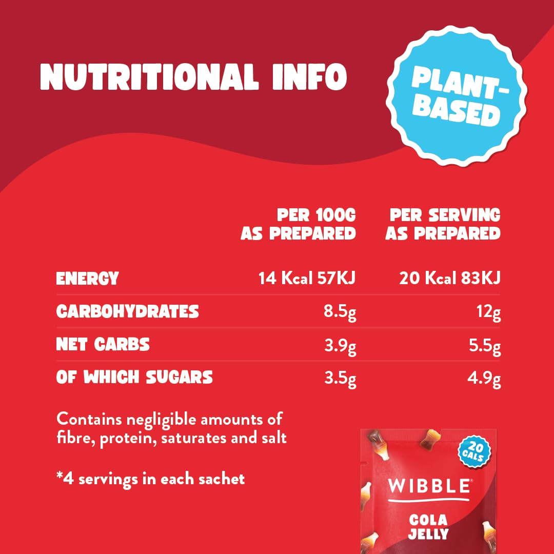 Introducing Wibble Cola Jelly Crystals – a delicious, plant-based jelly that sets quickly and delivers the sweet, nostalgic taste of Cola gummy sweets. This innovative jelly is perfect for anyone seeking a low-sugar, vegan-friendly treat with no artificial ingredients.