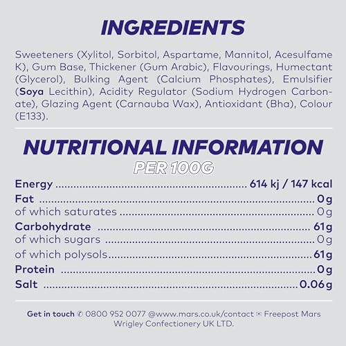 - Sorbitol, Aspartame, Mannitol, Acesulfame K – sweeteners that provide sugar-free sweetness