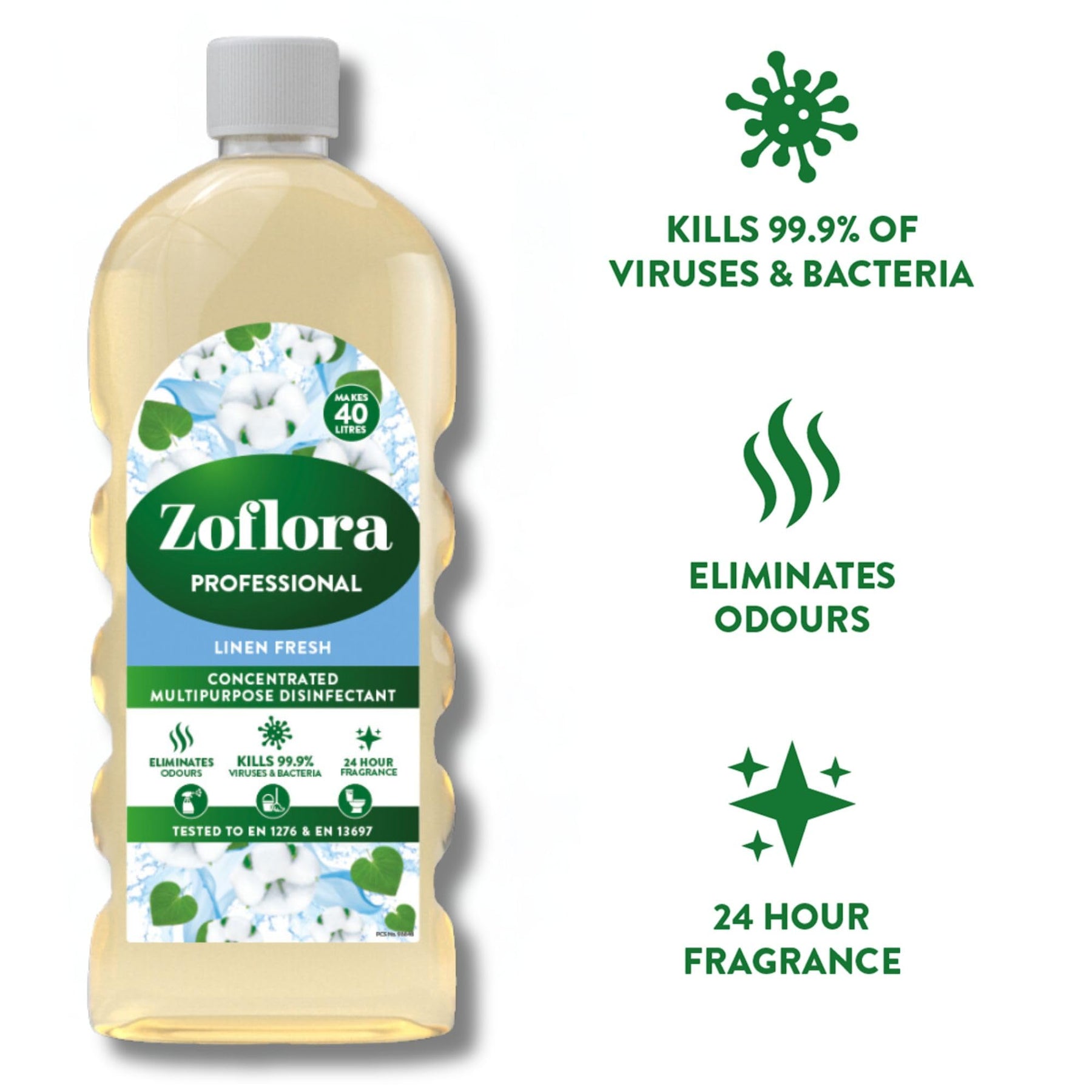 Zoflora Concentrated Disinfectant kills 99.9% of bacteria and viruses, helping to protect your family from harmful germs while eliminating odours and leaving a long-lasting linen fresh fragrance throughout your home. Proudly made in Yorkshire since 1922, Zoflora is a trusted, indulgently fragranced cleaning brand with over 100 years of heritage.
