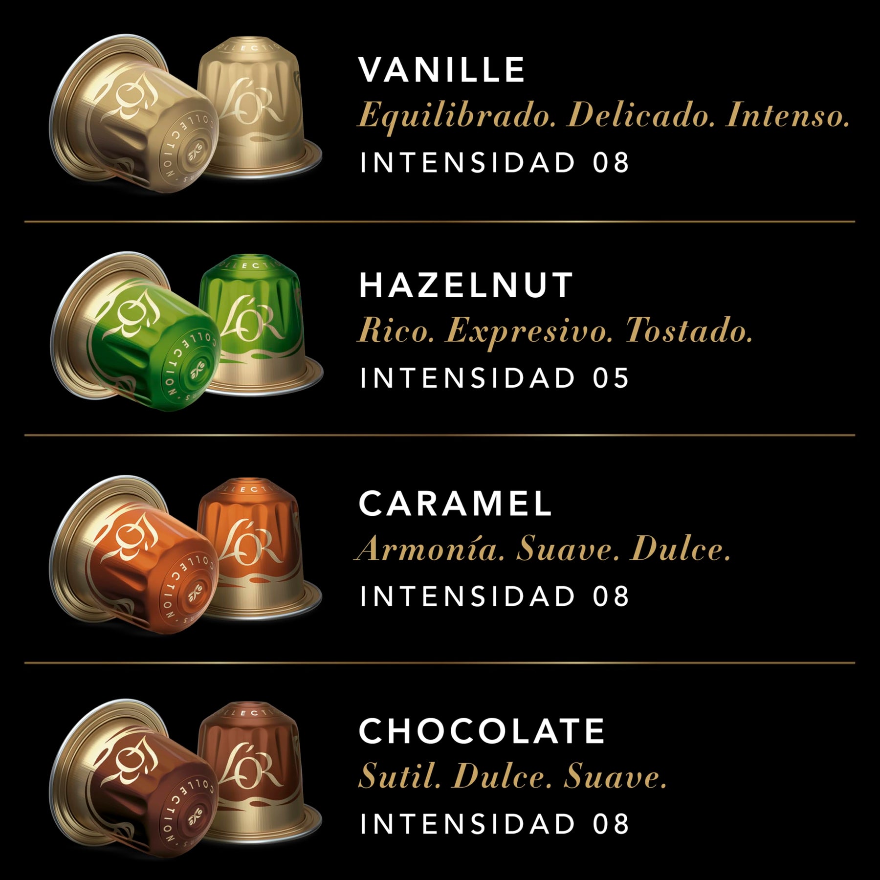 L'OR Espresso Flavours Variety Bundle x40 - Vanilla, Hazelnut, Caramel, Chocolate - Nespresso® Compatible