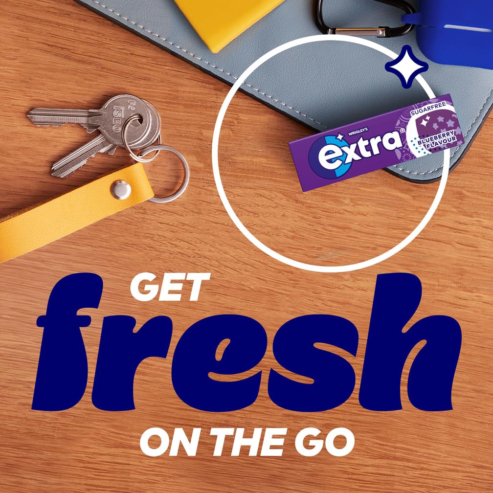 Stay fresh and focused throughout your day with Wrigley's Extra Blueberry Sugar-Free Chewing Gum. Perfect for on-the-go freshness, whether you're heading to the gym, working from home, or powering through a busy schedule, this invigorating blueberry-flavored gum delivers long-lasting flavor and a refreshing boost whenever you need it.